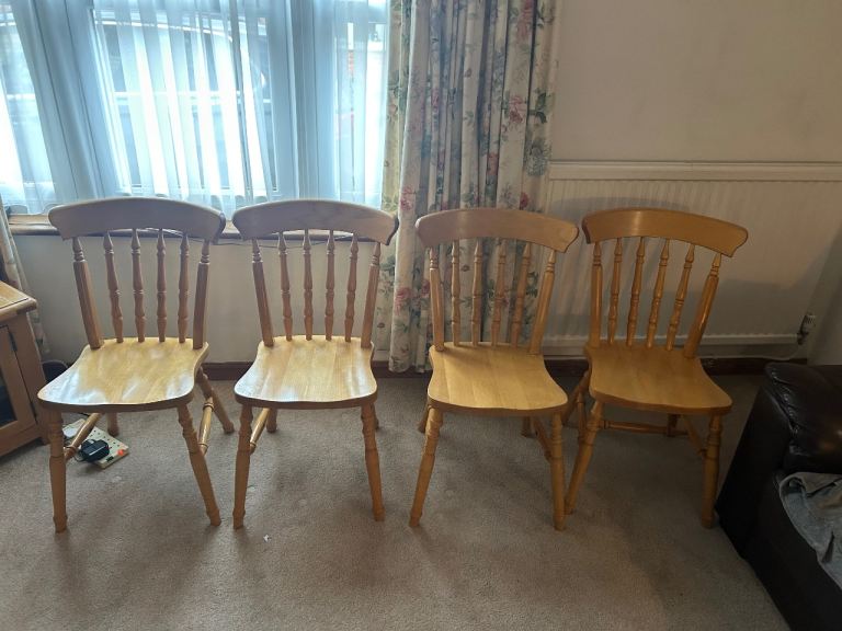 DARK OAK DINING CHAIRS WITH STUD DETAILING