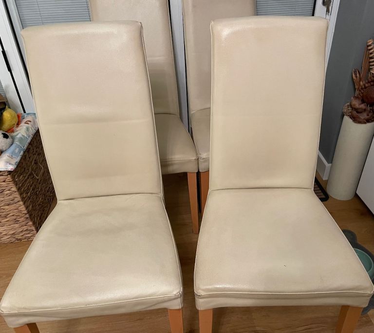 Cream dining chairs from Next. I have bought a new dining set so these are surplus and too good the throw away who ever wants these would have to collect please