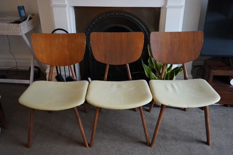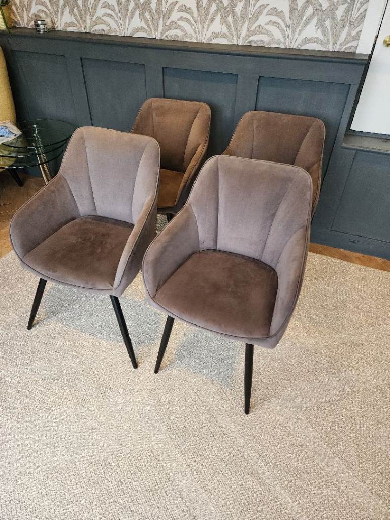 4 dining chairs and 2 matching bar stools, grey velvet with black metal legs, all excellent condition. FREE but must be collected today from Wenvoe area.
