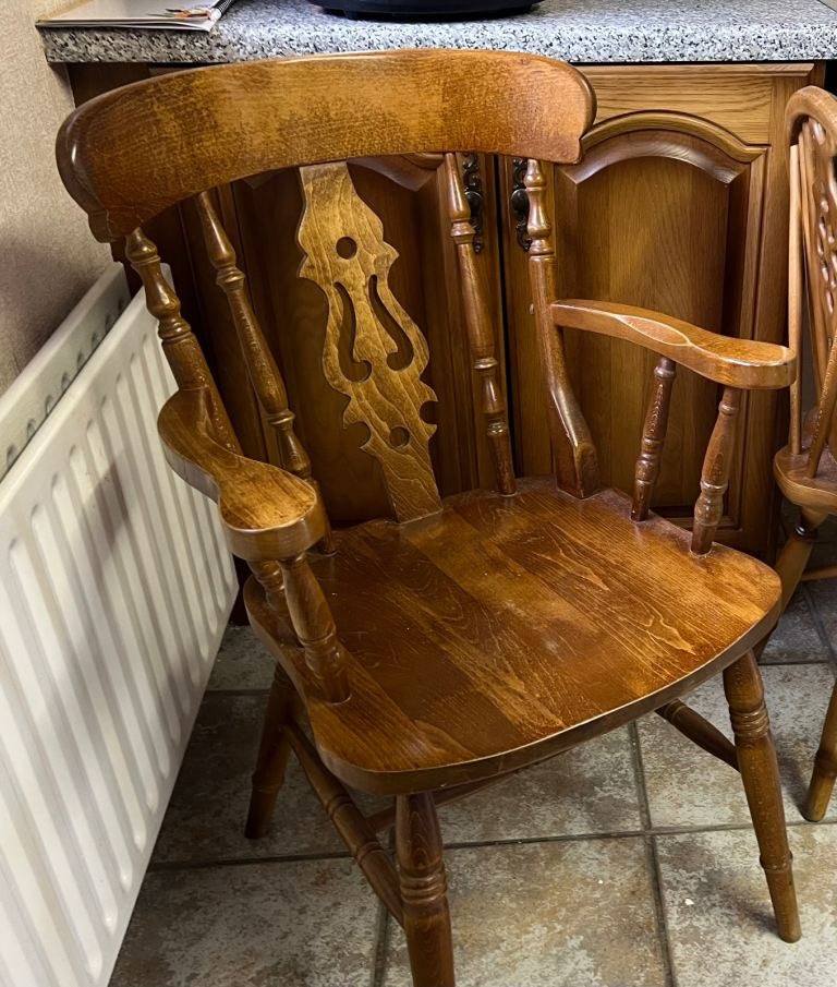 A oak carver chair . A super chair as it is or would make a great statement chair to upcycle .