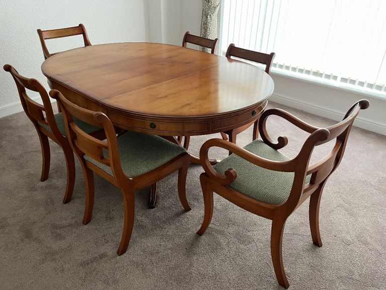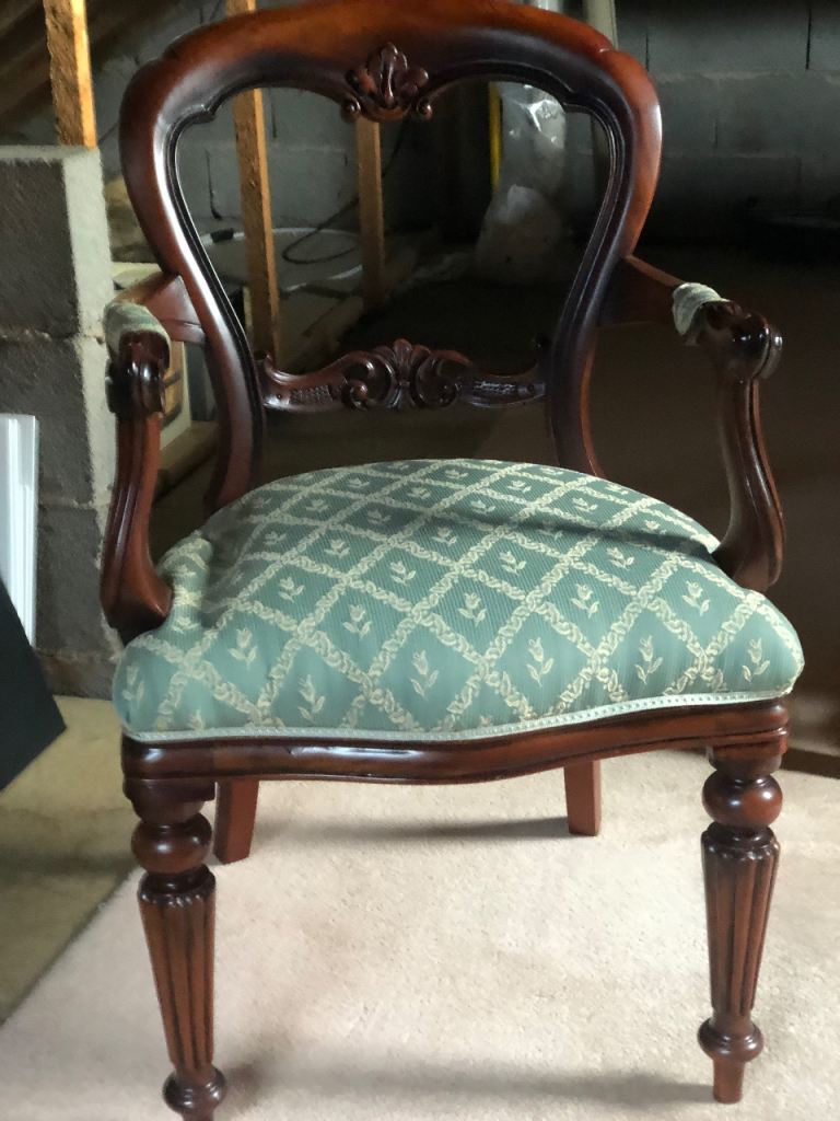 Pair of Reproduction Dark Oak Carver Dining Chairs Upholstered in Green – Excellent Condition - £180 for the pair.