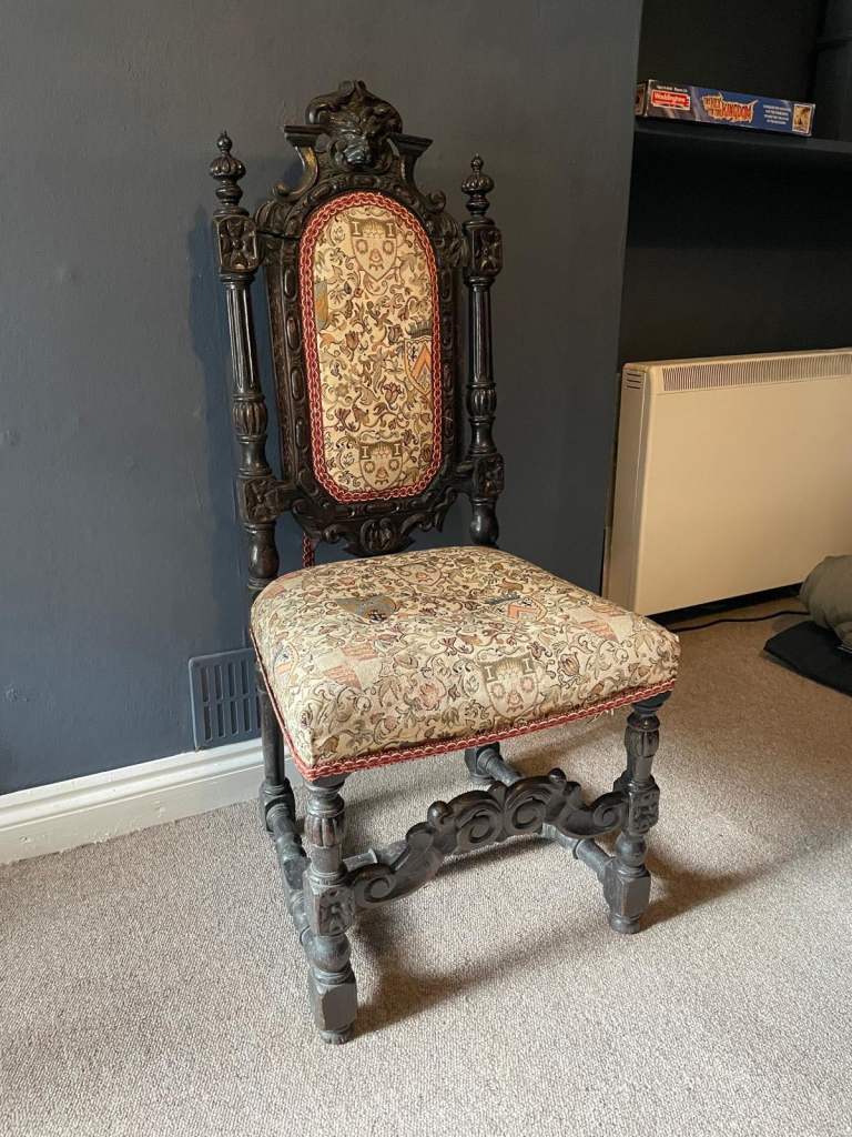 Pair of Reproduction Dark Oak Carver Dining Chairs – Excellent Condition