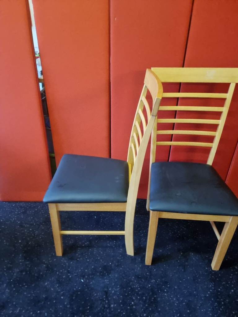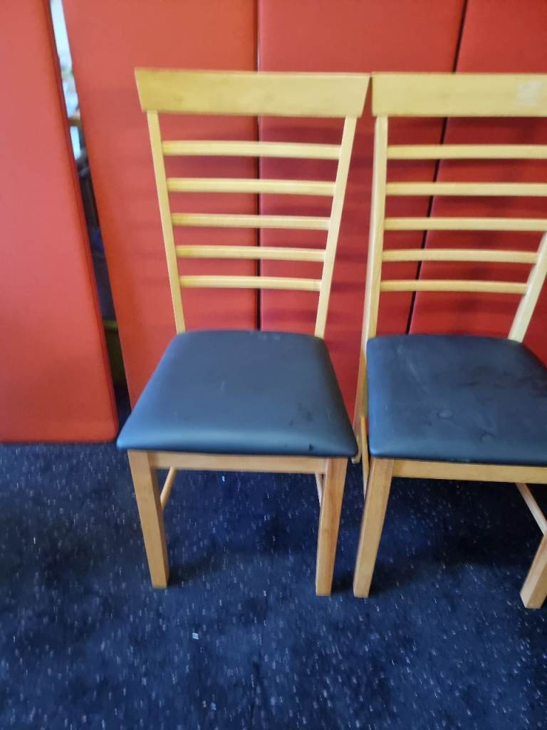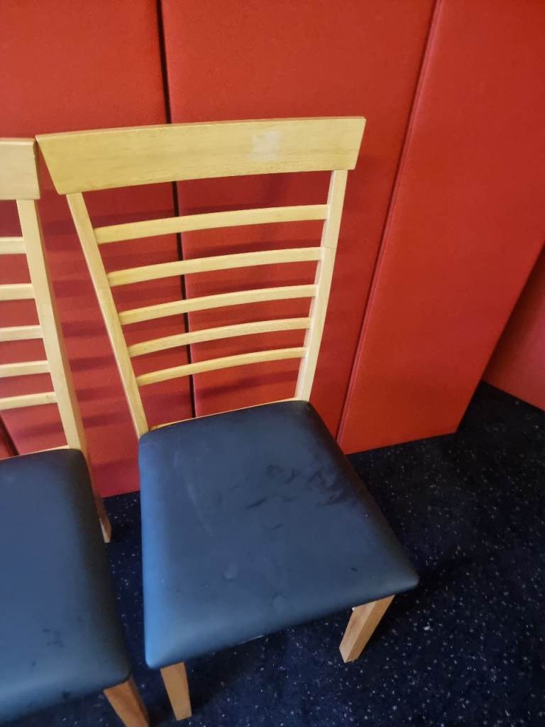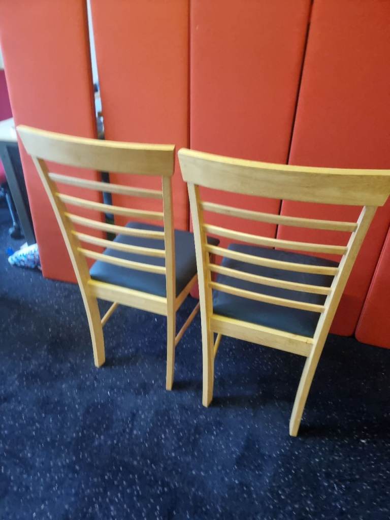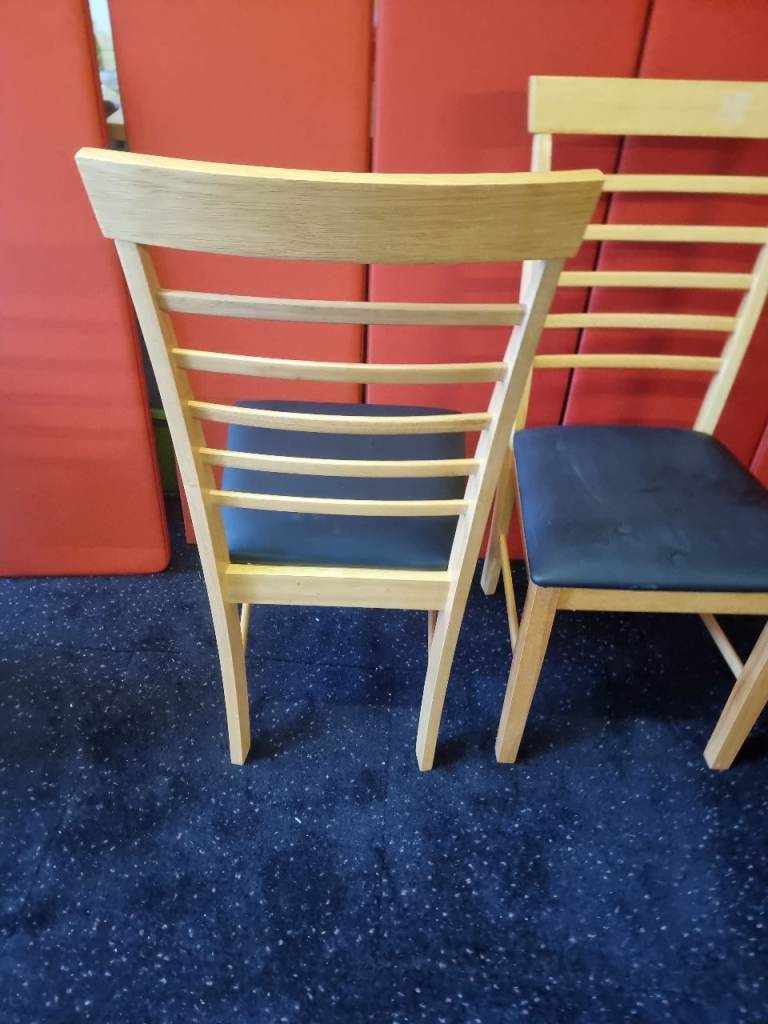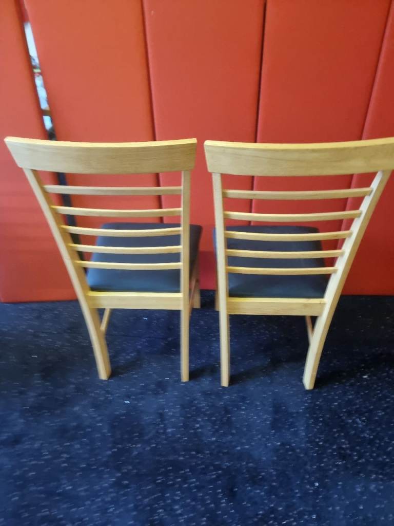 Pair of Wayfair Dining Chairs Wood and Black Leather Never Been Used