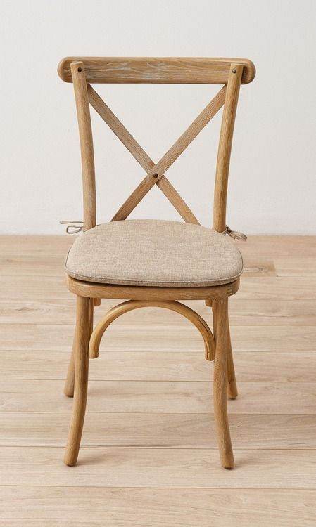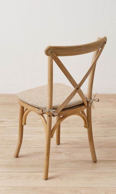 Solid wooden seat with removable tie-on cushion