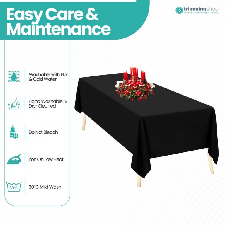 EASY CARE: The fabric table cloths are very easy to keep clean. They can be hand-washed, are machine washable with hot or cold water and can also be dry-cleaned. The linen table covers will keep their colour no matter how many times they are washed.