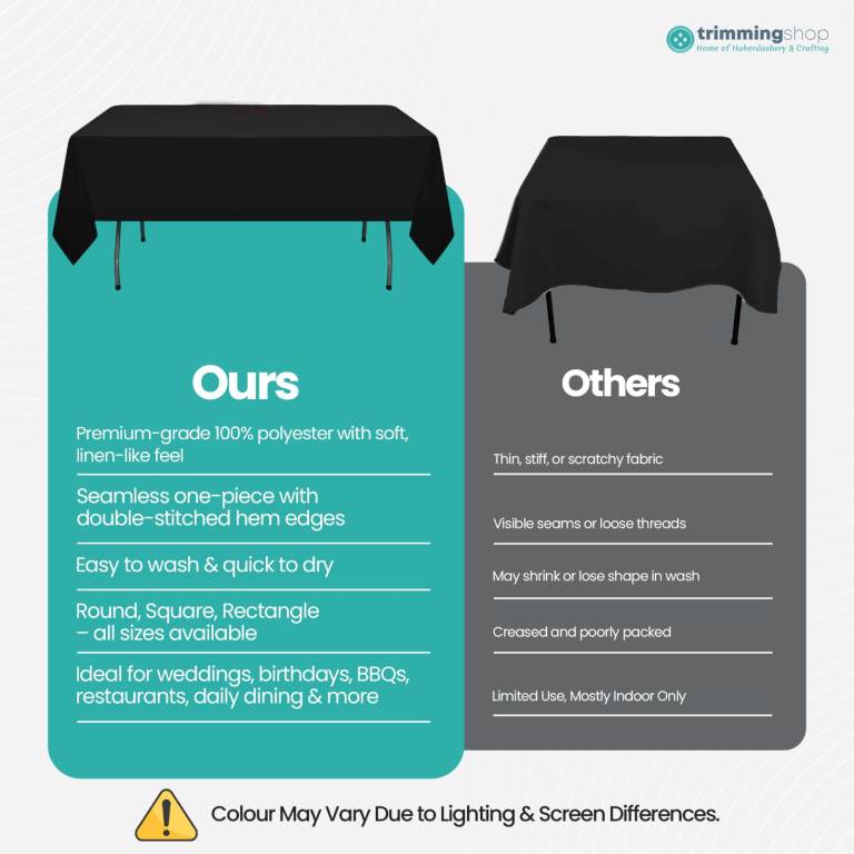 PERFECT FOR ANY OCCASION: These luxurious polyester tablecloths will bring a touch of sophistication to any event, such as weddings, Christmas dinners, parties or banquets and can also be used for outdoor gatherings too.