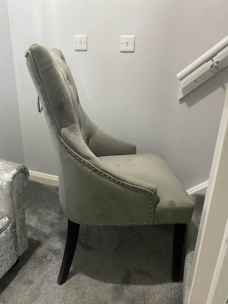 Posting for 2+ yearsSet of 2 dining table chairs grey velvet Knocker backs