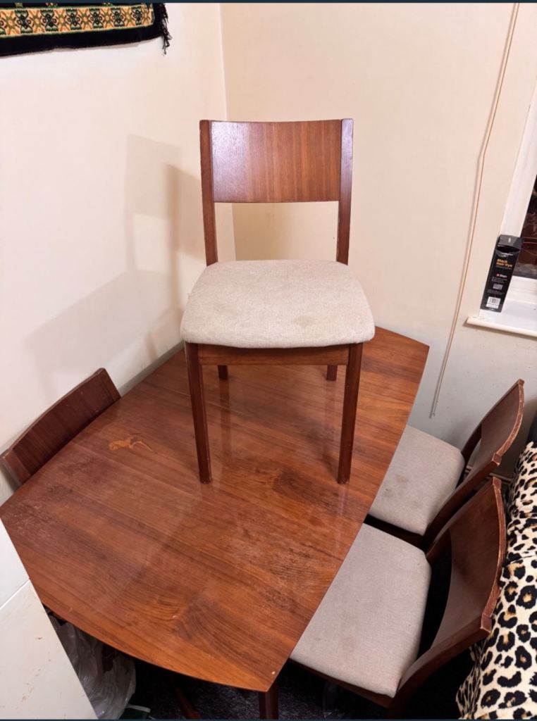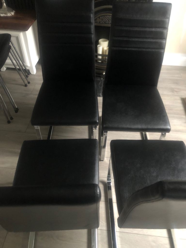 6 x solid oak dining room padded chairs. Unmarked pads. Excellent condition . £210.