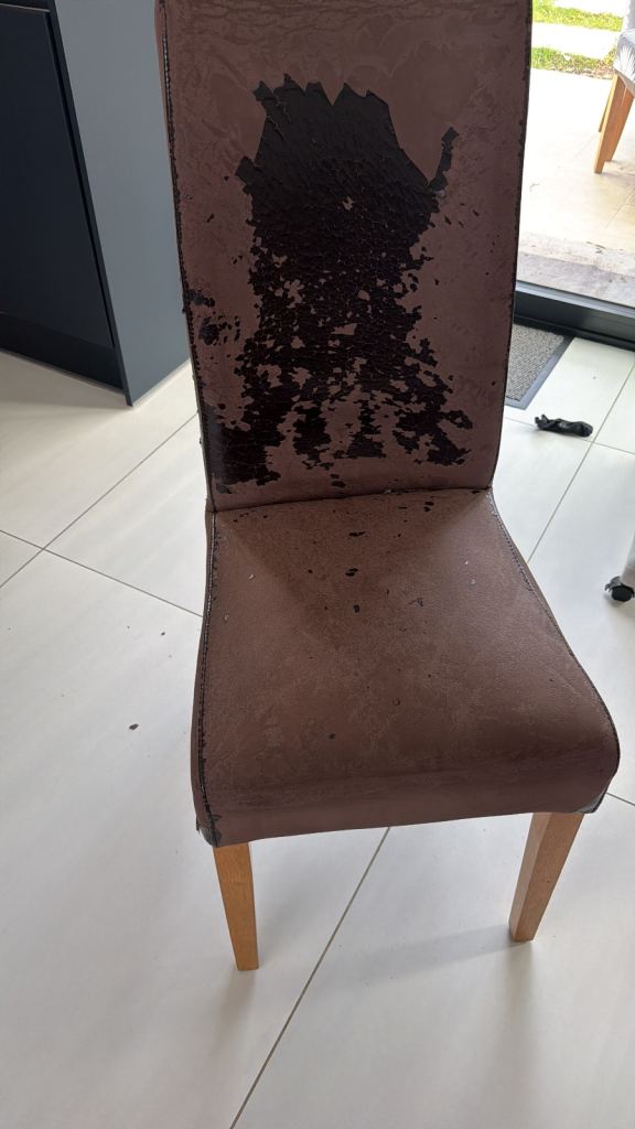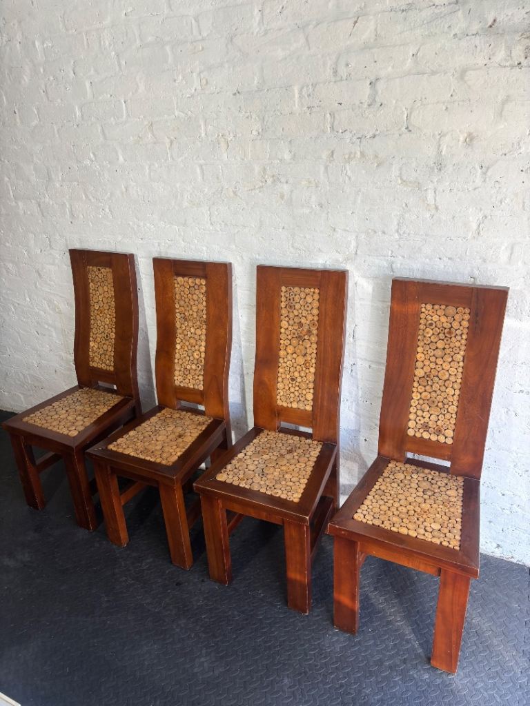 One of the chair seats has a spillage on it, and they would all benefit from new fabric to suit your own taste.