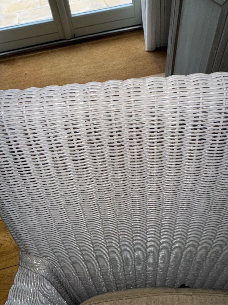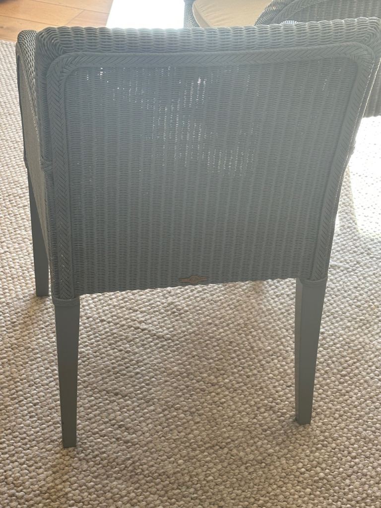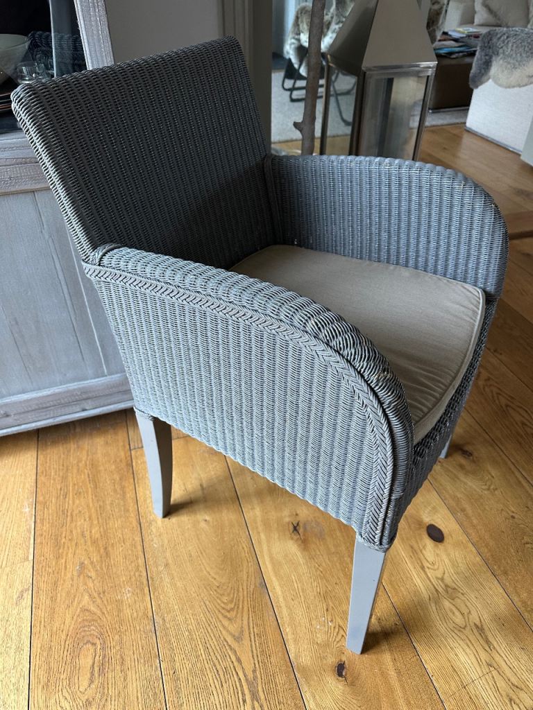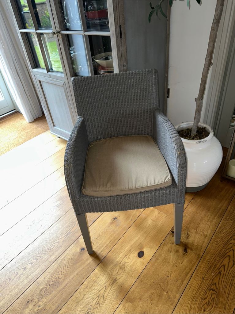 They are mid grey with a taupe colour padded cushion. Small scratches on the rattan as they were moved but can be touched up easily.very solid and comfortable. Price per chair £50