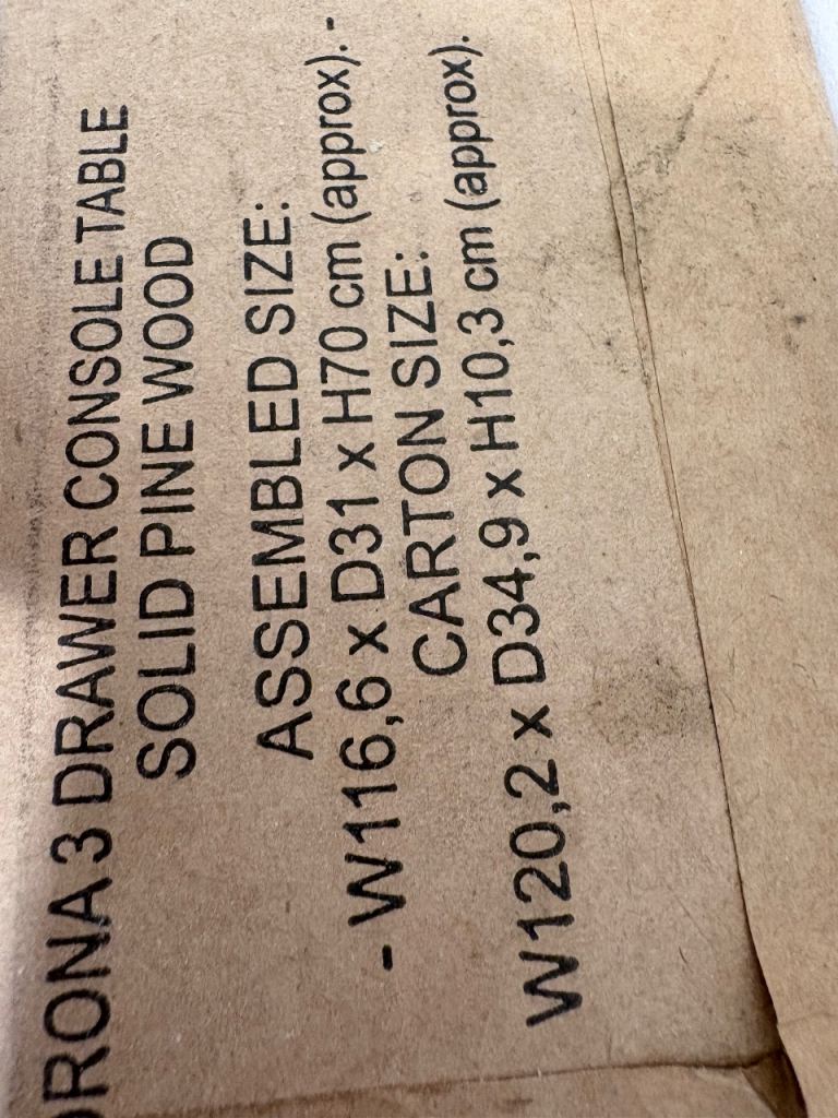 BRAND NEW: ordered two Corona Console Tables by accident only needed one so hence the sale of the second table. In box which has never been opened. Lovely piece of furniture and will make a great addition to your home. Sensible offers are welcome!!