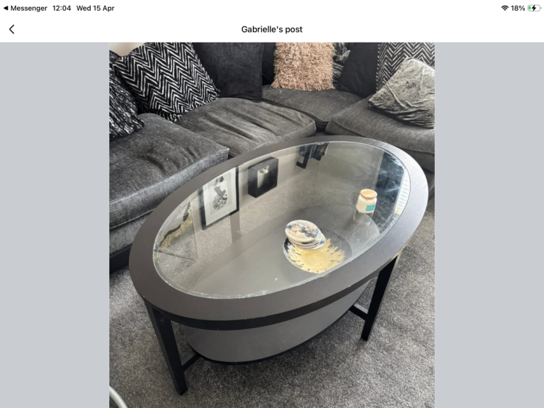 Wooden black coffee table and grey chair.. no longer required Free.. free to uplift.