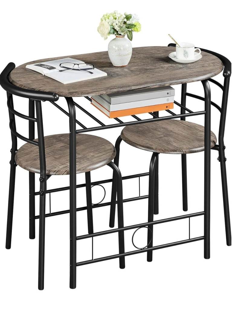 Posting for 2+ yearsSet of New Drift grey table with storage under and two chairs