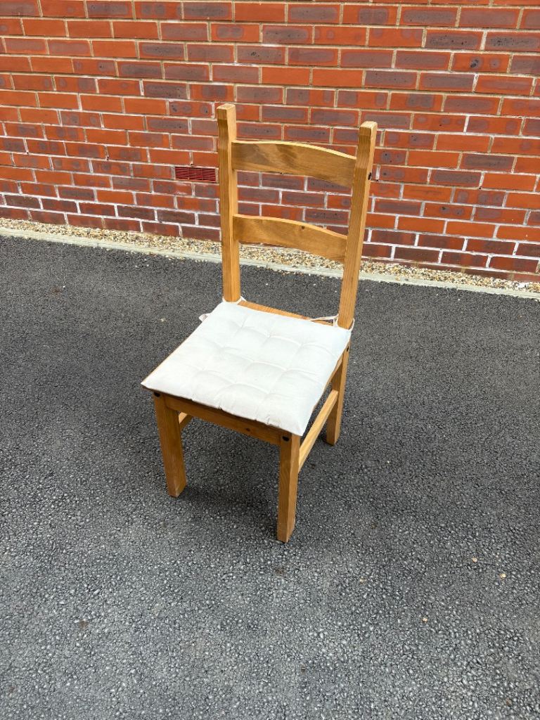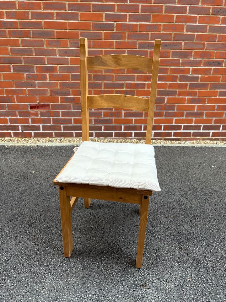 Wooden dining table and chair set with cushions. Good condition, dimensions in cm: