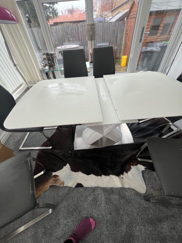 White High Gloss Extending Dining Table + 6 Grey Chairs