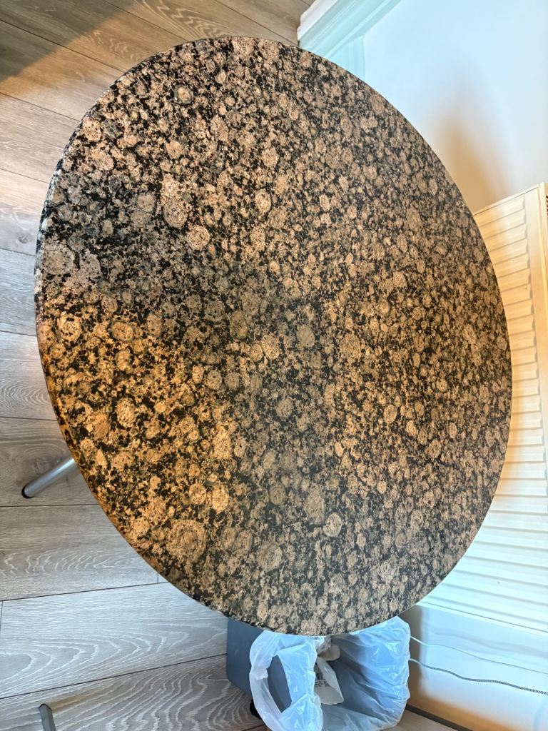 The oriental antique dining set is in great condition. It’s solid rosewood. The table has two removable panels so the dimensions can be adjusted from a round table to a long table.
