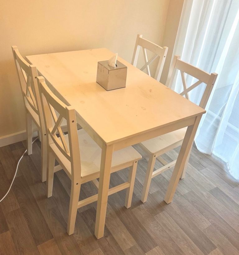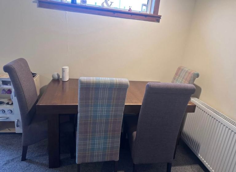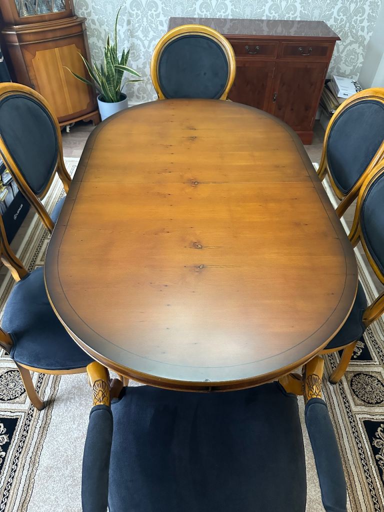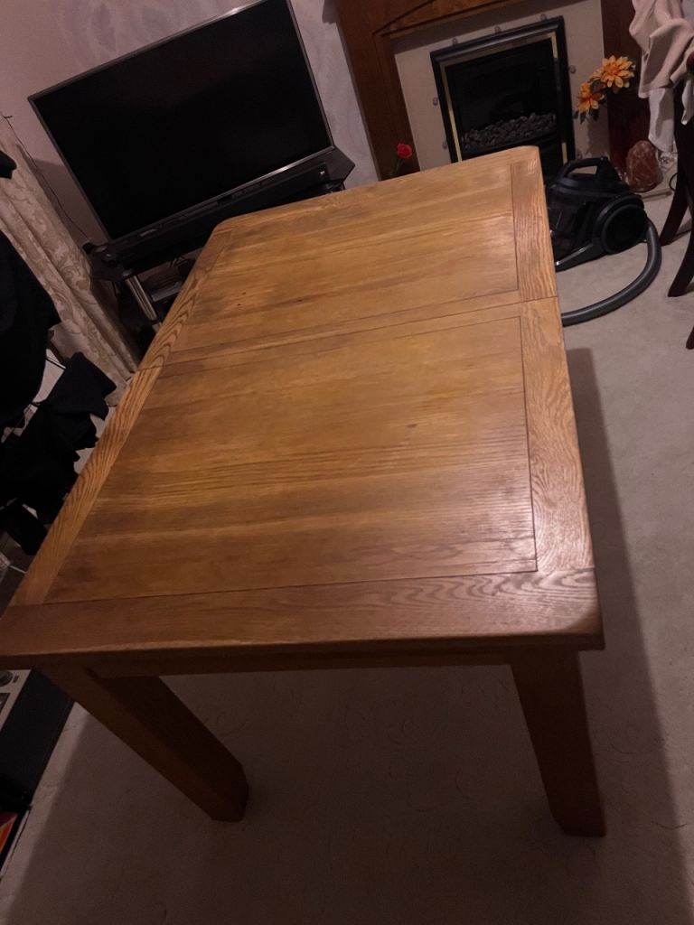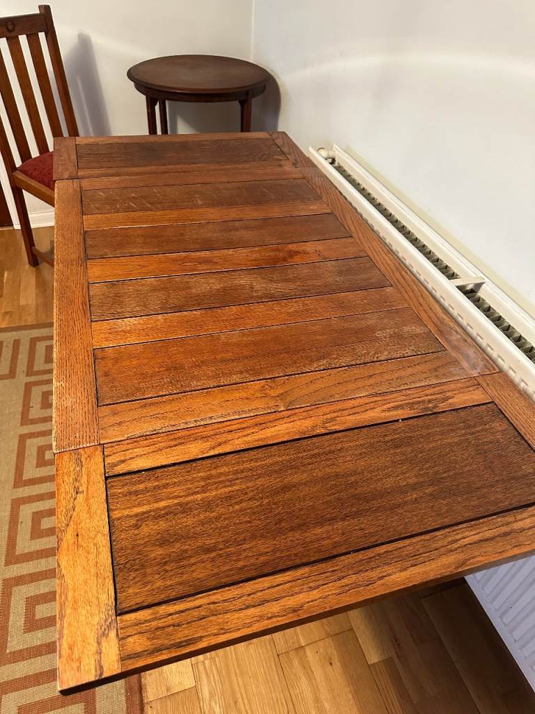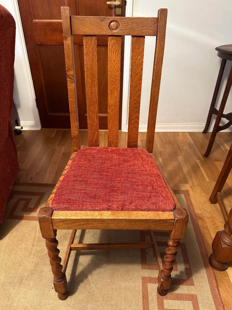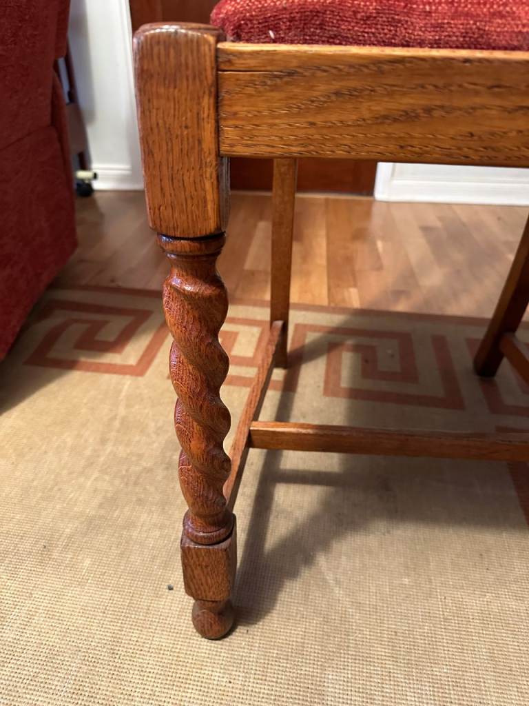 Antique oak barley-twist leg, extending dining table and three chairs. All in generally very good condition, especially considering the age. The table top extends by pulling out the two leaves at each end of the table. Table size 73cm wide x 90cm long, extending to 150cm long when both leaves extended. We also have a free dining chair advertised, it has matching fabric seat, but doesn’t match the other chairs, but may be useful. Asking £300. Any questions please message, or have a look, no obligation to buy. Collection from Fordingbridge. Cash sale only please.