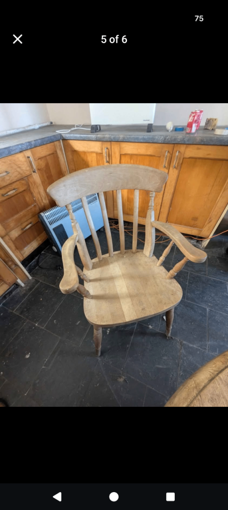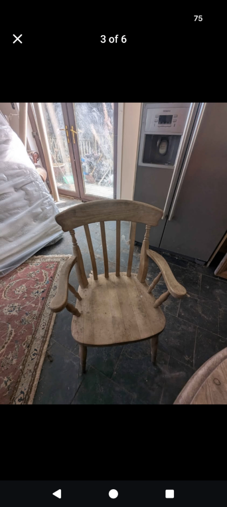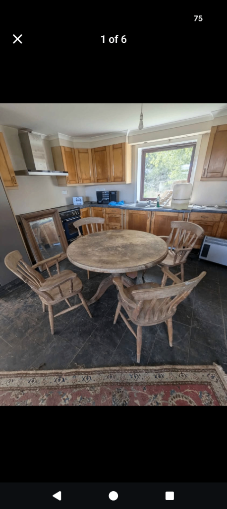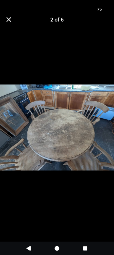 Antique pine dining table and chairs one chair has slight damage as shown in picture