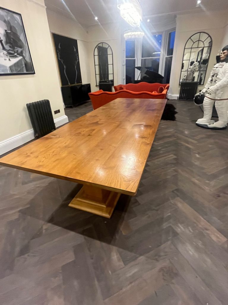 Gorgeous handmade oak dining table - immaculate condition handmade for me. Spectacular piece of furniture and only selling as it doesn't work in new kitchen.