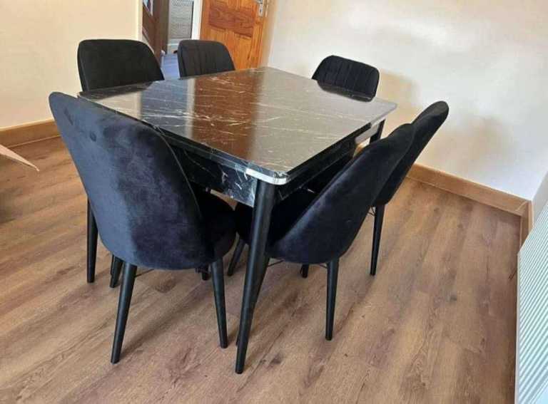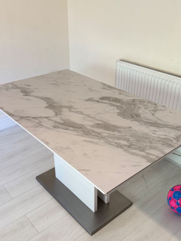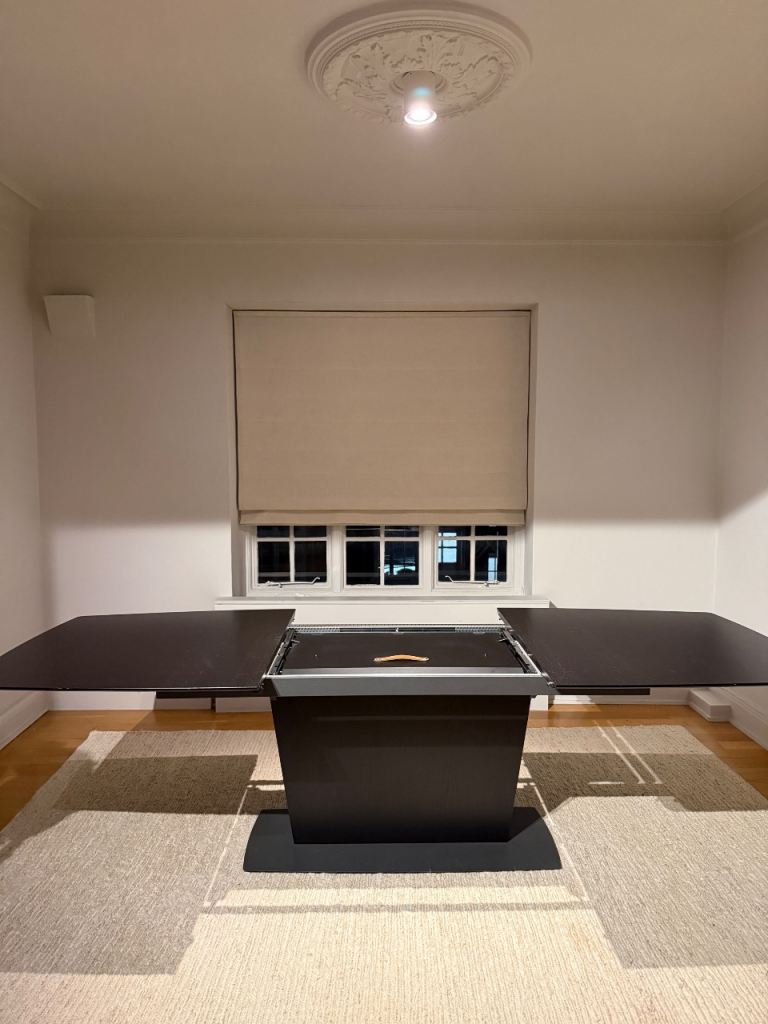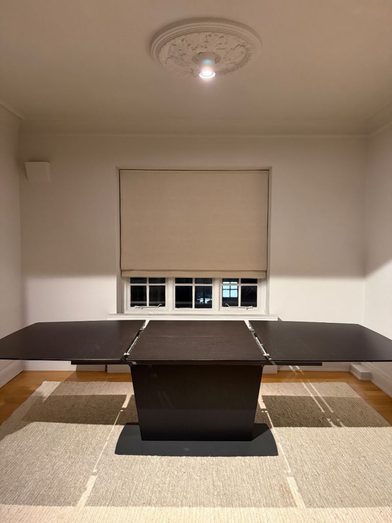 The table extends easily with integrated leaves, taking it from a comfortable 6-seater to 8–10 guests — perfect for hosting.