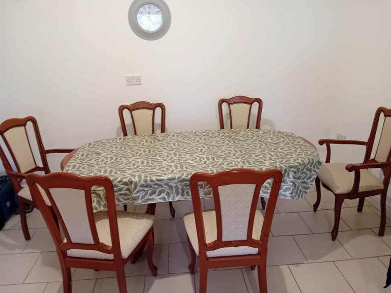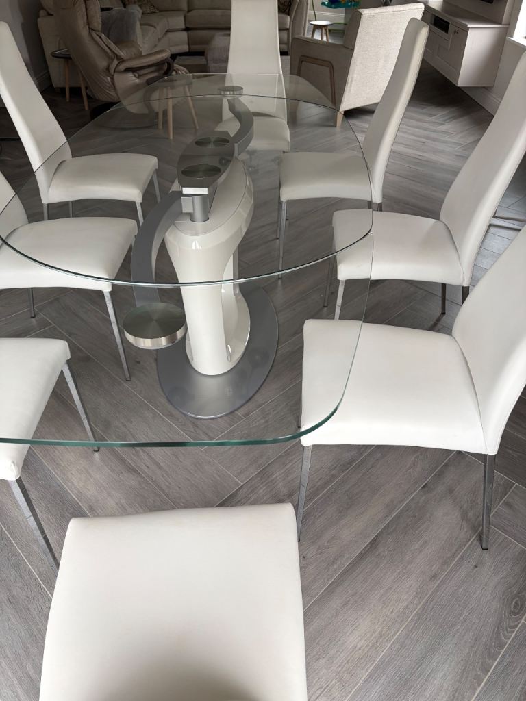 Posting for under a monthCaligaris Table & 8 white faux leather chairs