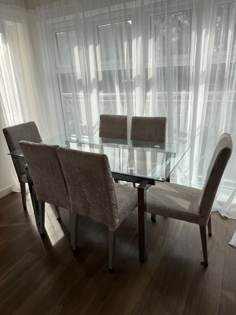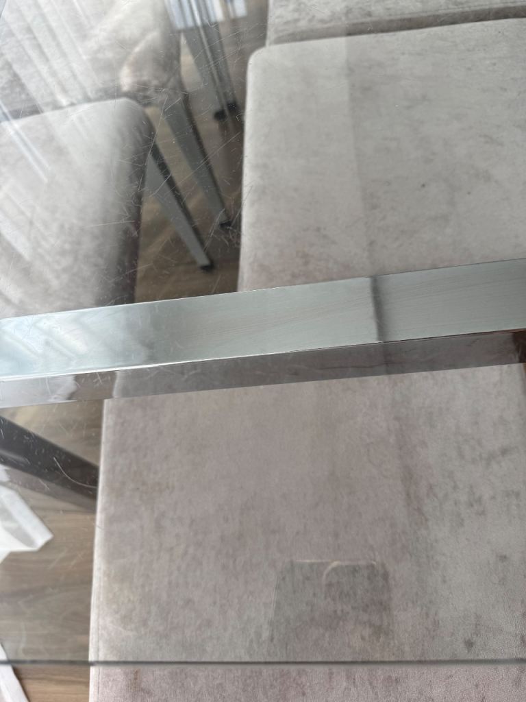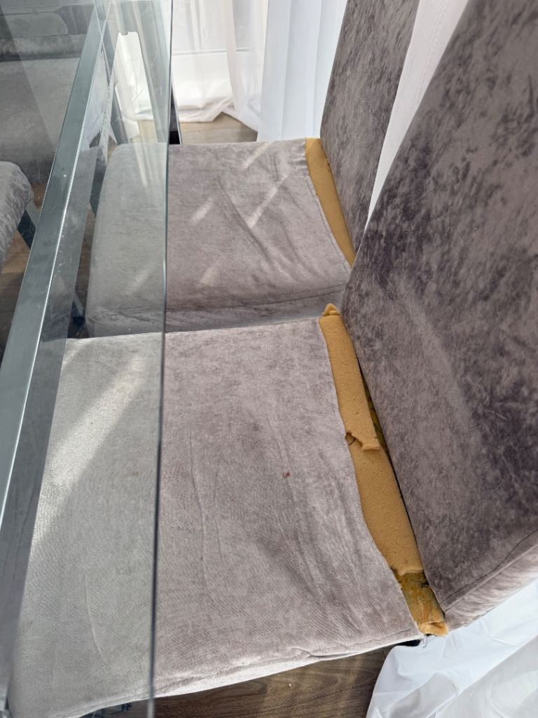 The fabric on 2 of the chairs has come away from the back of the seats, can easily be repaired with a staple gun or covered with seat covers