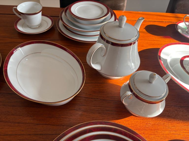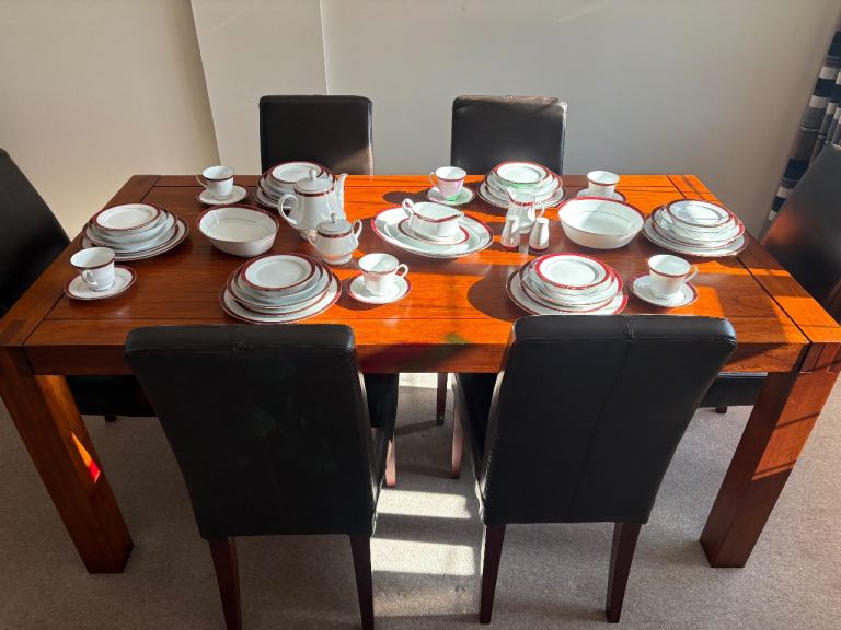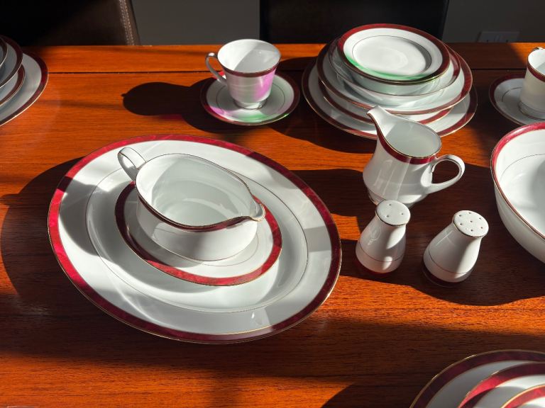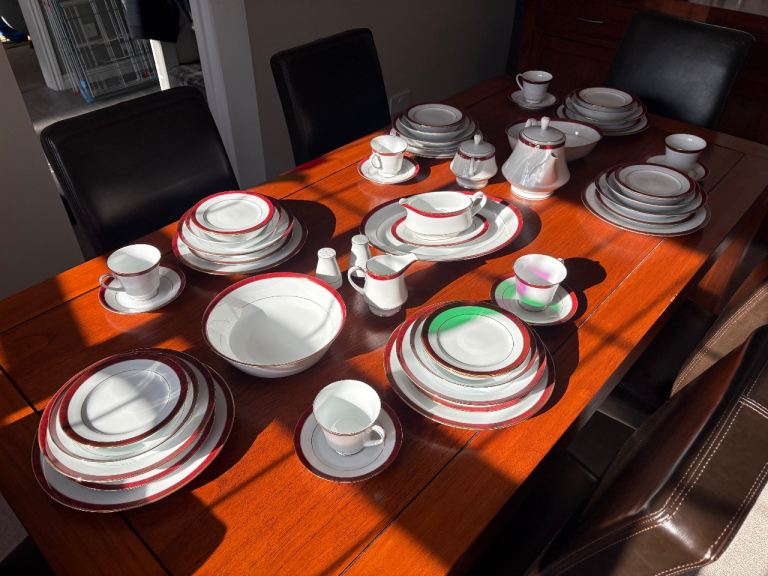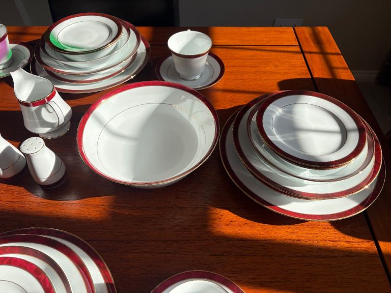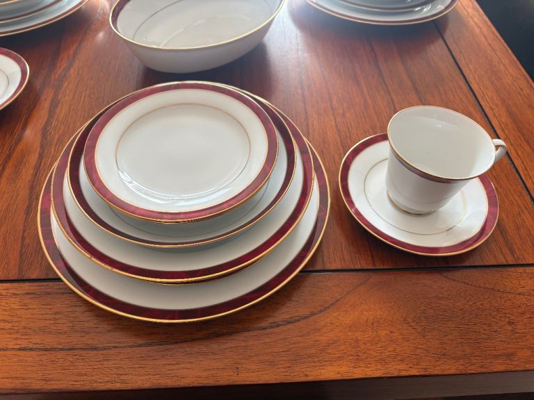 Posting for 15+ yearsDining Room Furniture Set plus 6-Place Setting China Dinner Service - Noritake Marble Red Legendary
