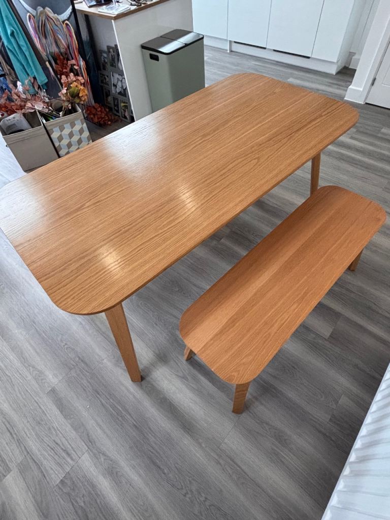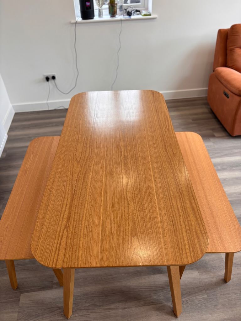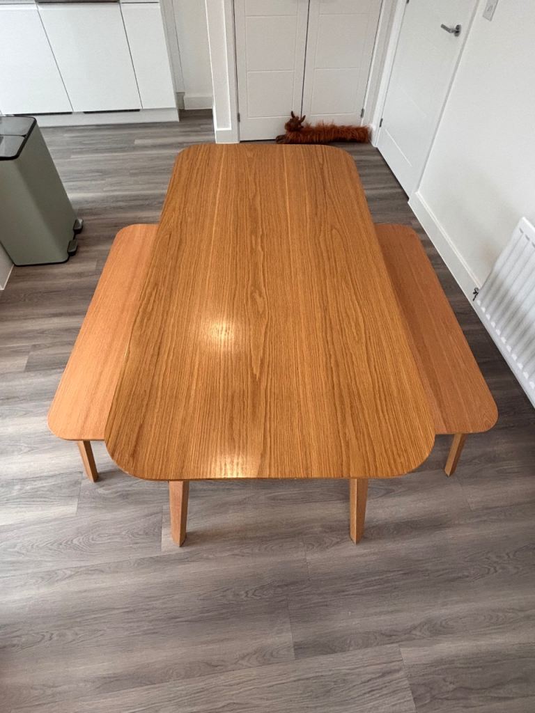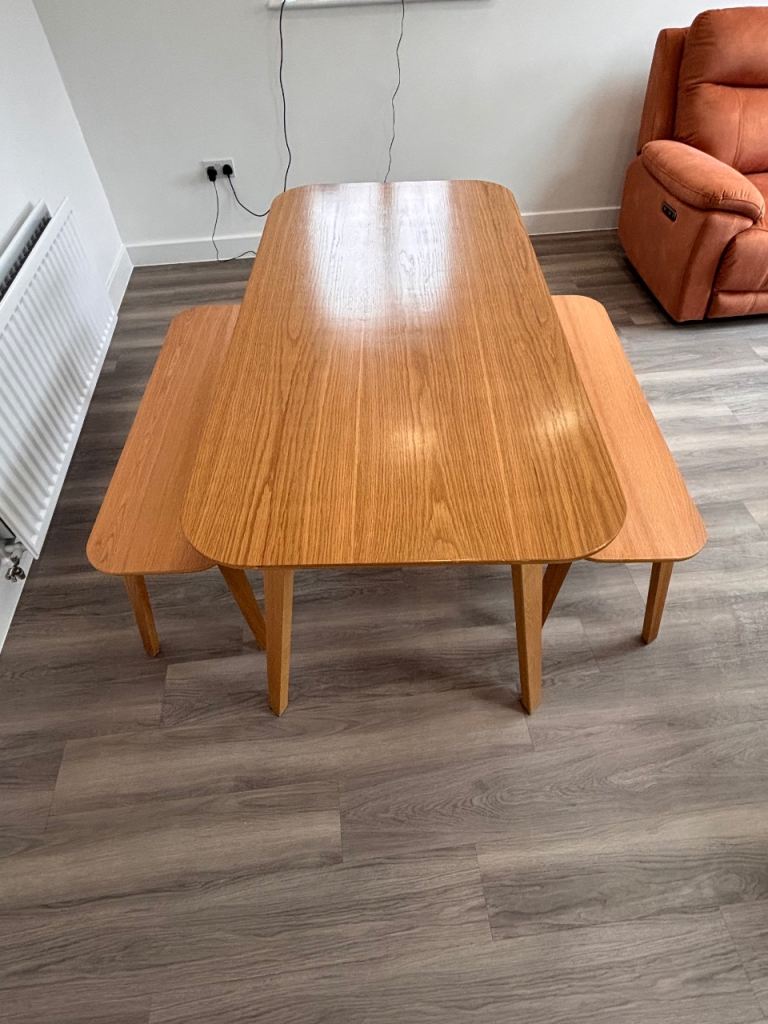 John Lewis dining table and two benches slight damage to one end see pics but hardly noticeable also few marks on legs