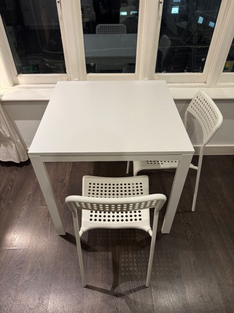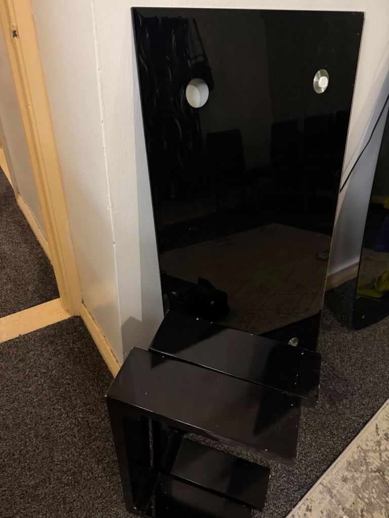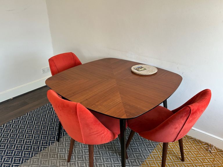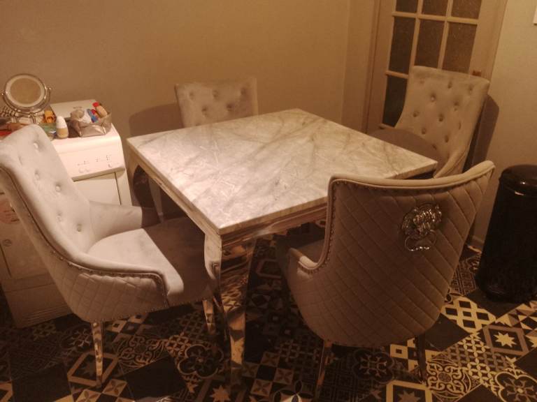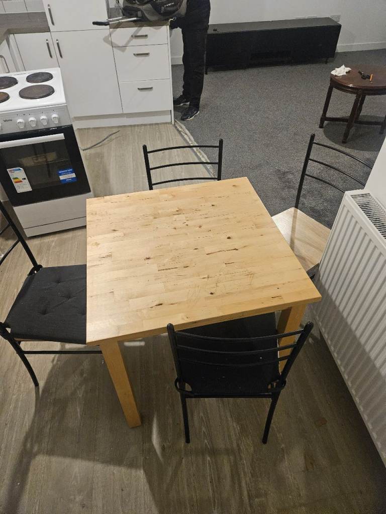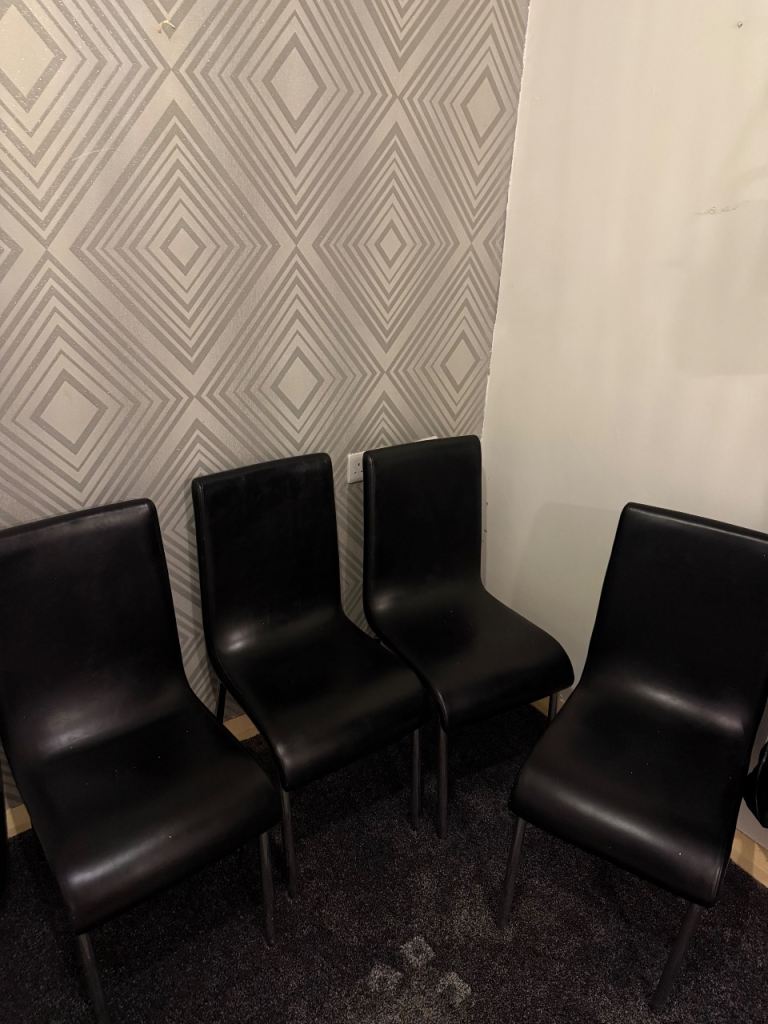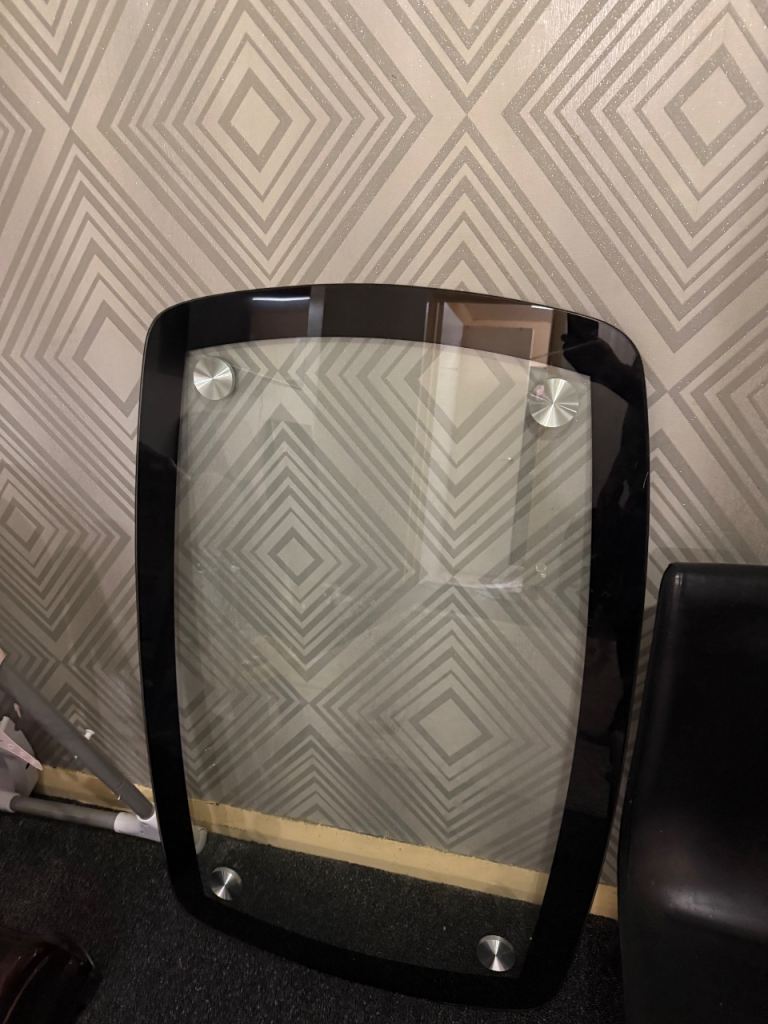 stylish 4-seater glass dining table with 4 matching chairs, plus one coffee table, all in very good condition.