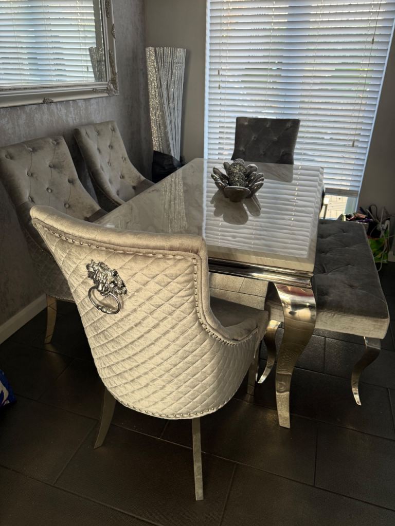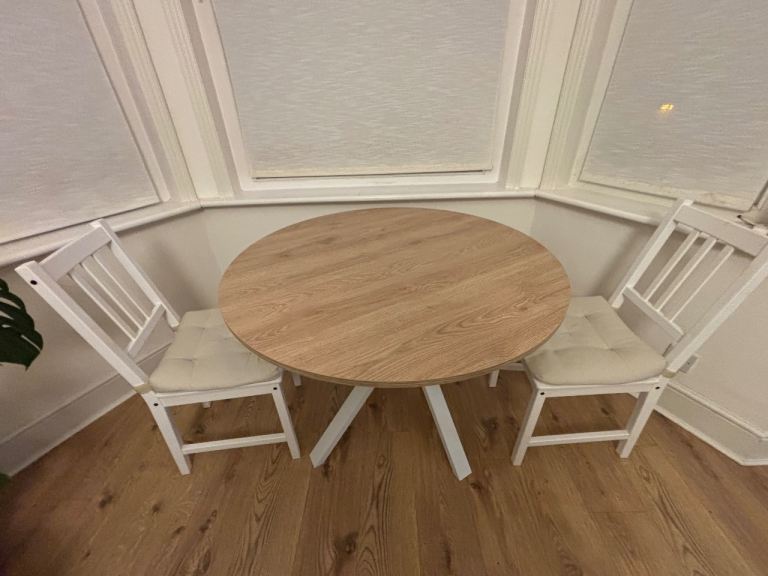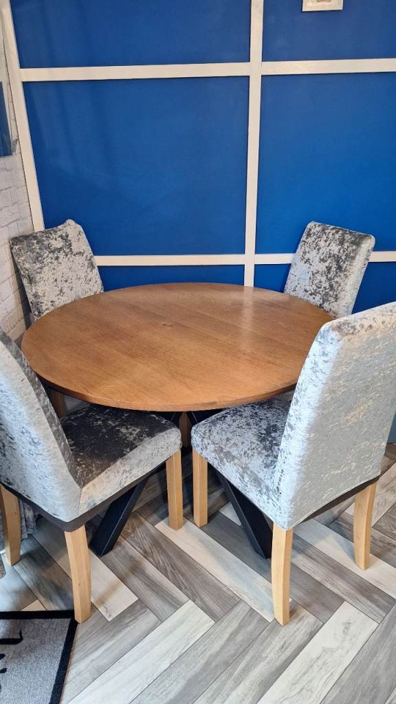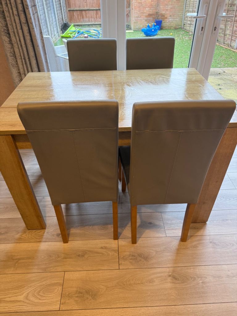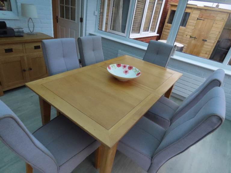 Grey oak veneer solid hardwood dining table. Only purchased in March. Hardly used and in great condition.