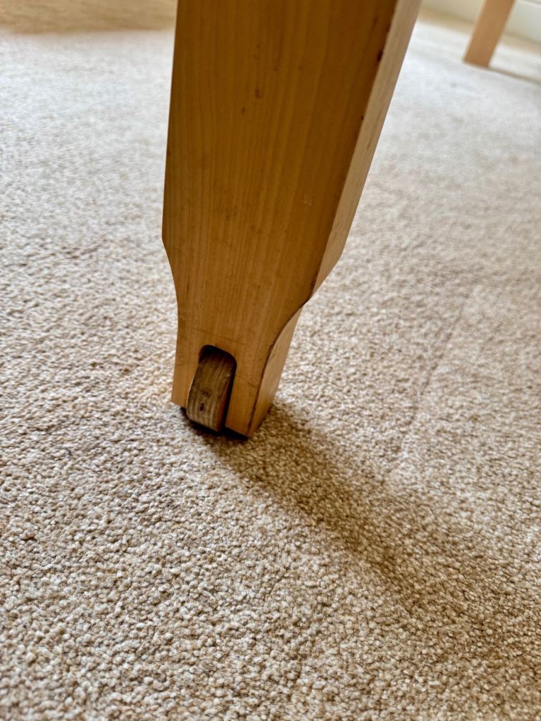 Extendable dining table in light oak with 2 chairs. Length 150cm, Width 84cm, Height 71cm. Extendable to 200cm with 50cm insert. Little usage. Collect from Chester.