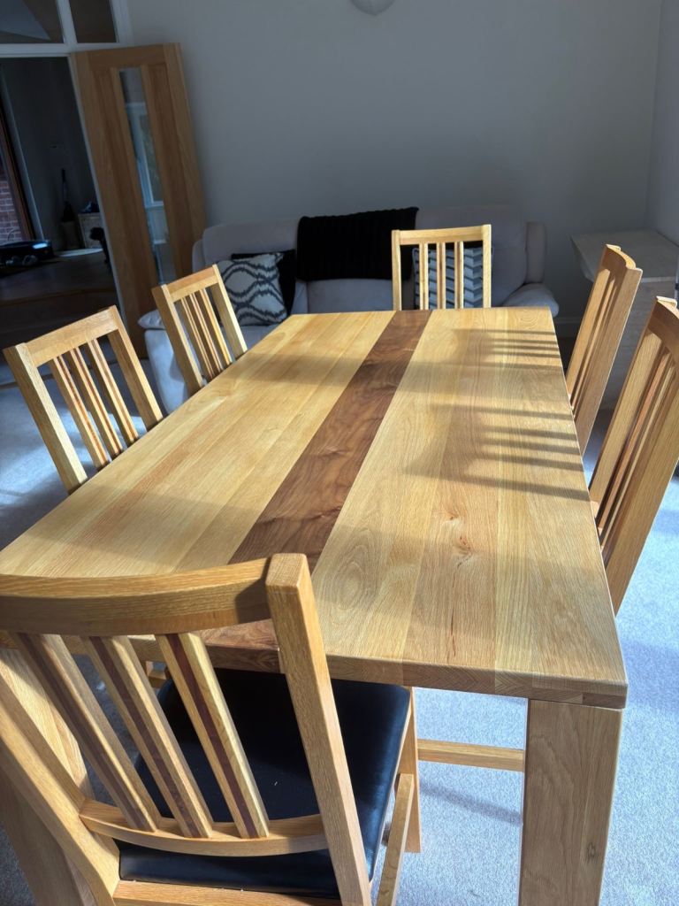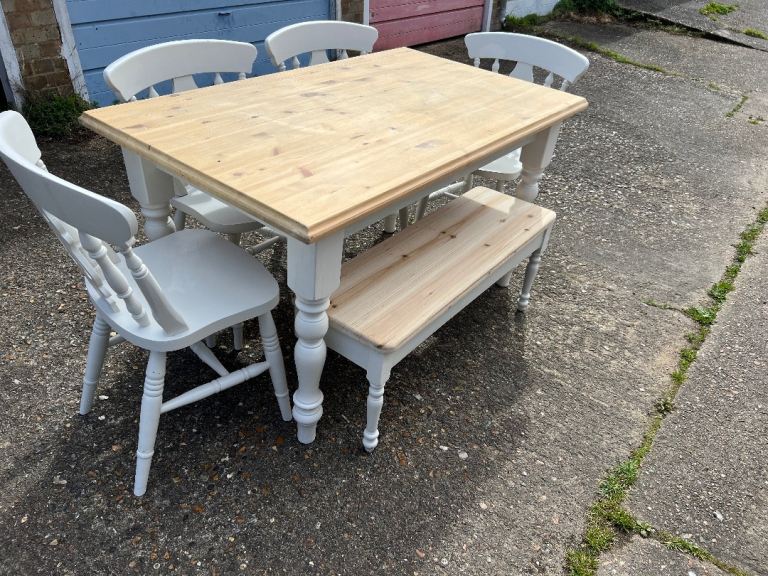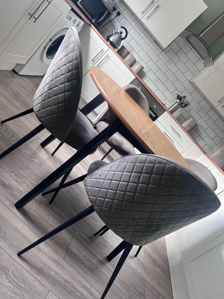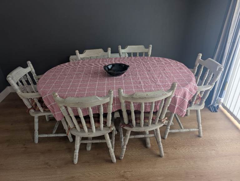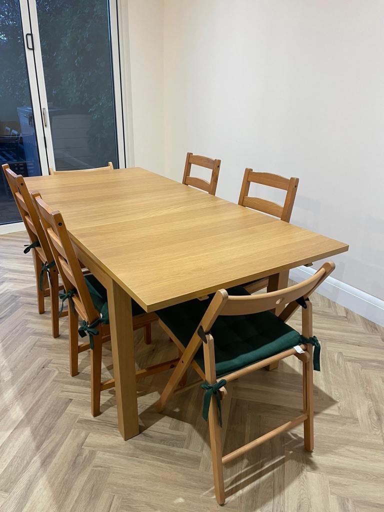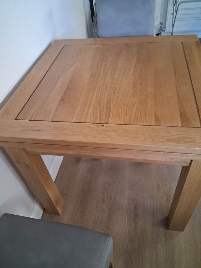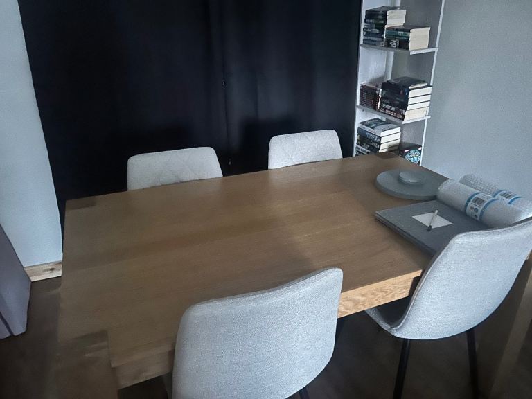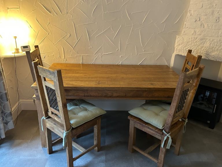Dining table comes with 4 chairs like new got children so tiny scratches on the side selling due to having a new one thank you