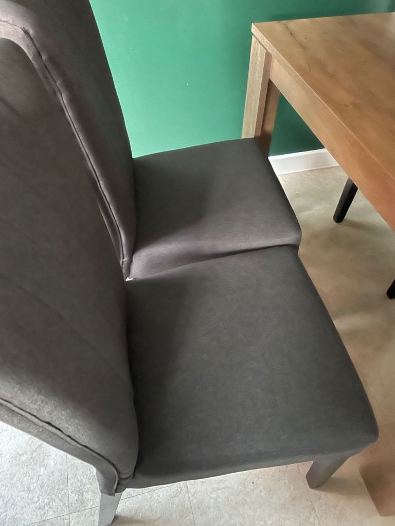 Dining room table and 4 tall fabric chairs. From pet and smoke-free home.
