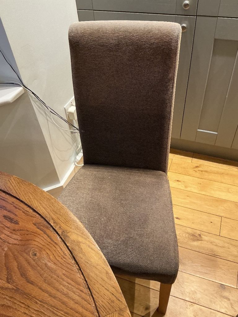 Solid wood dining table with four high back chairs