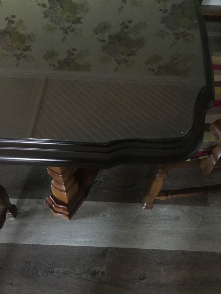 Table is 81 inches by 39 inches wide. 2 leaves can be taken out