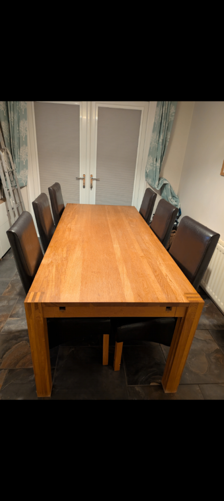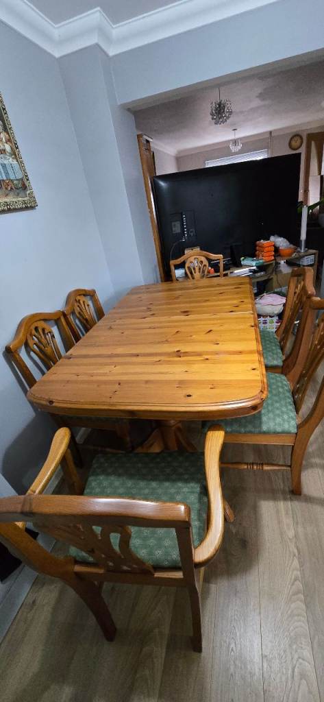 Lovely large extending dining table that once extended measures 195cms long allowing you to sit up to 10 making it perfect for entertaining bargain £95 the set available immediately collection from cowbridge