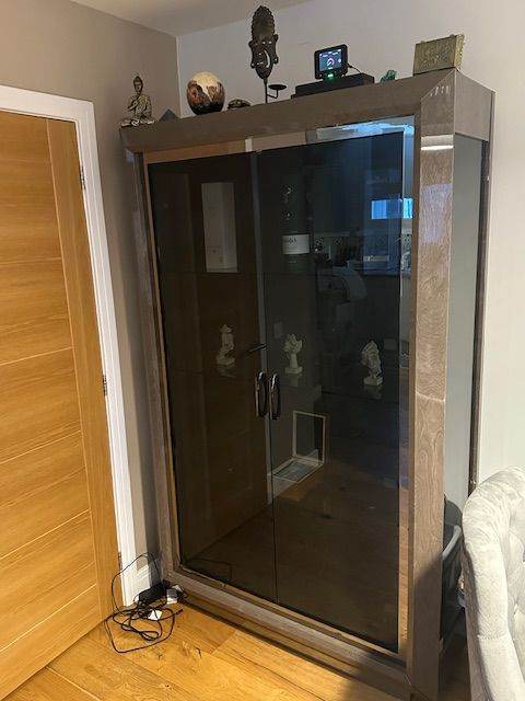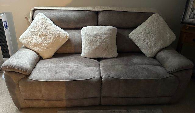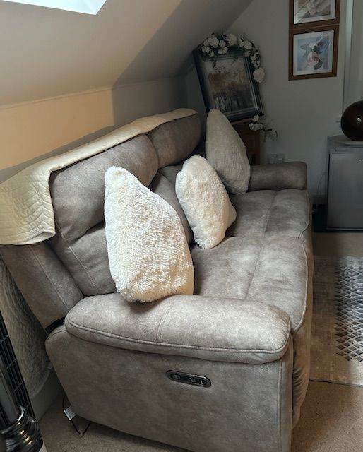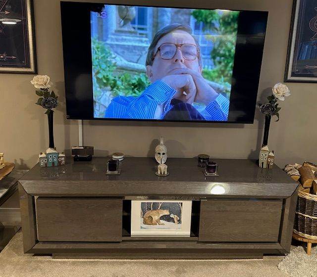 3 other pieces of furniture also for sale (Palazzo large glass display cabinet and matching TV unit), prices to be discussed as immaculate and hand made and immaculate ' no marks ' 3 seater Sloane charcoal electric sofa.
