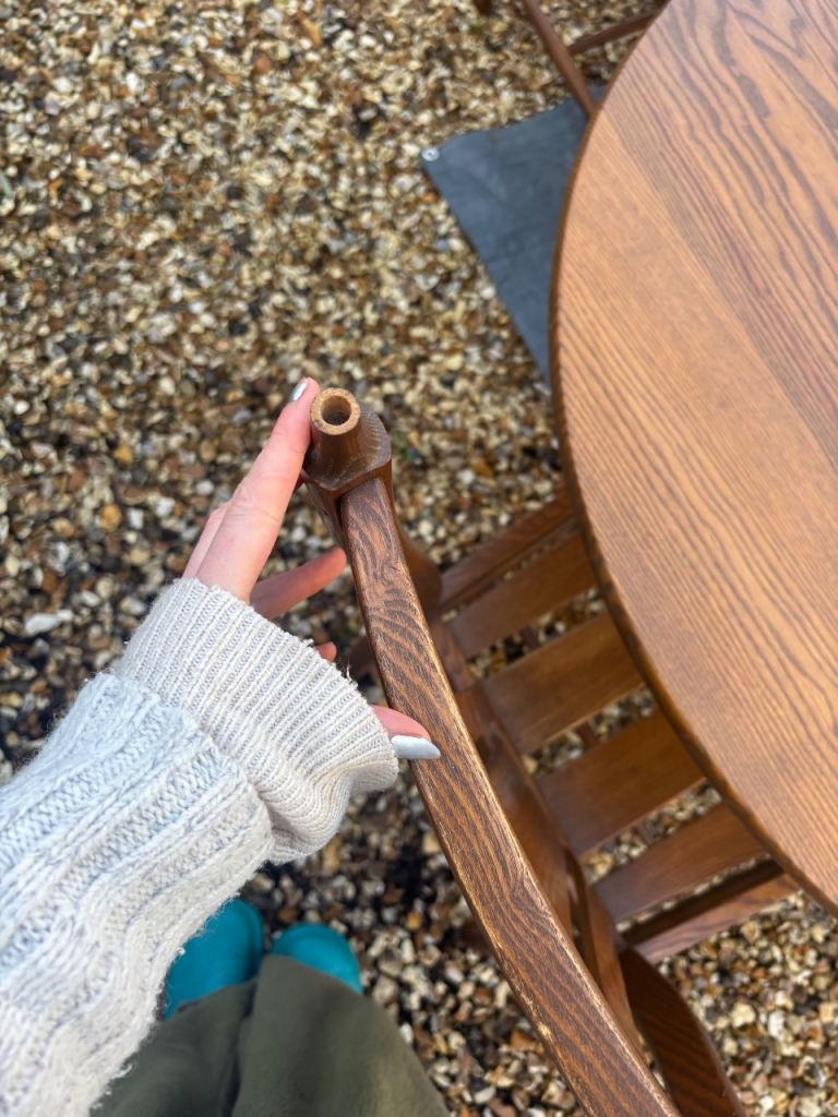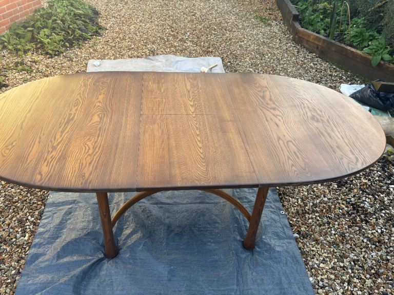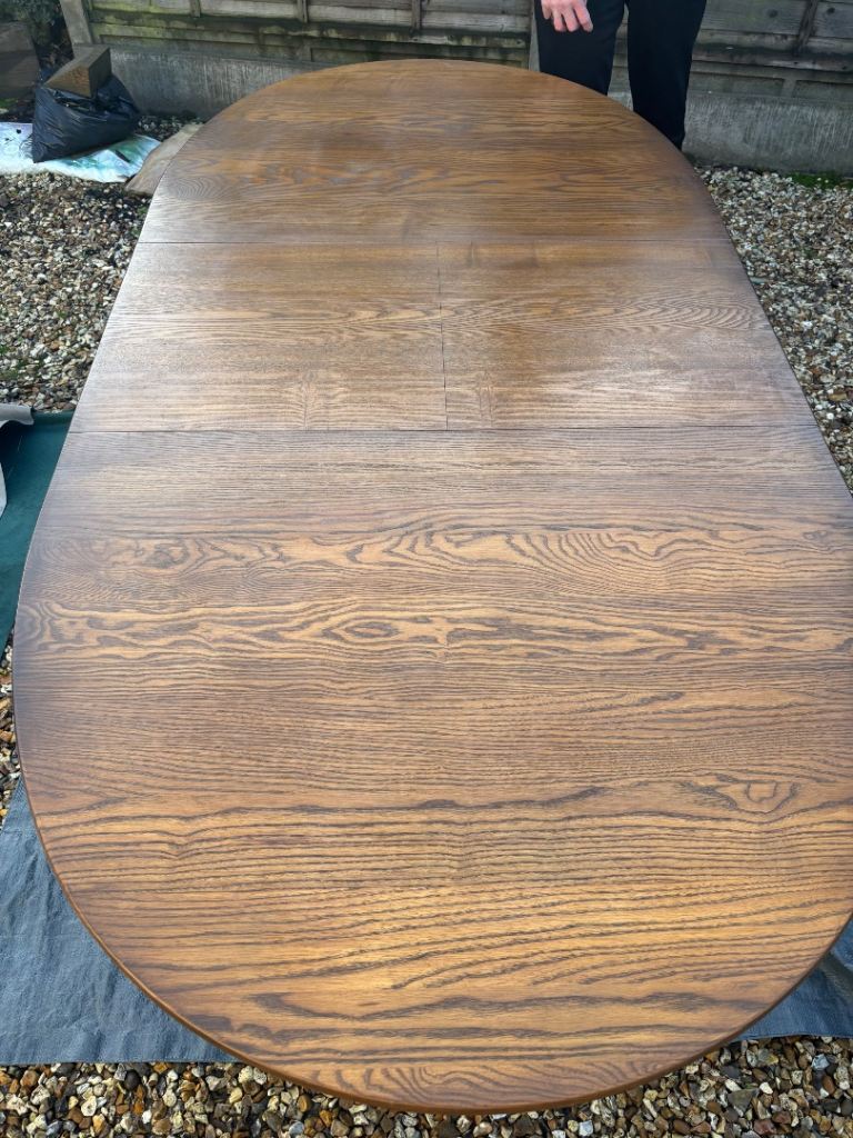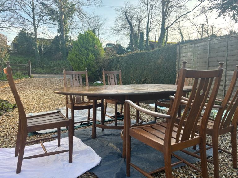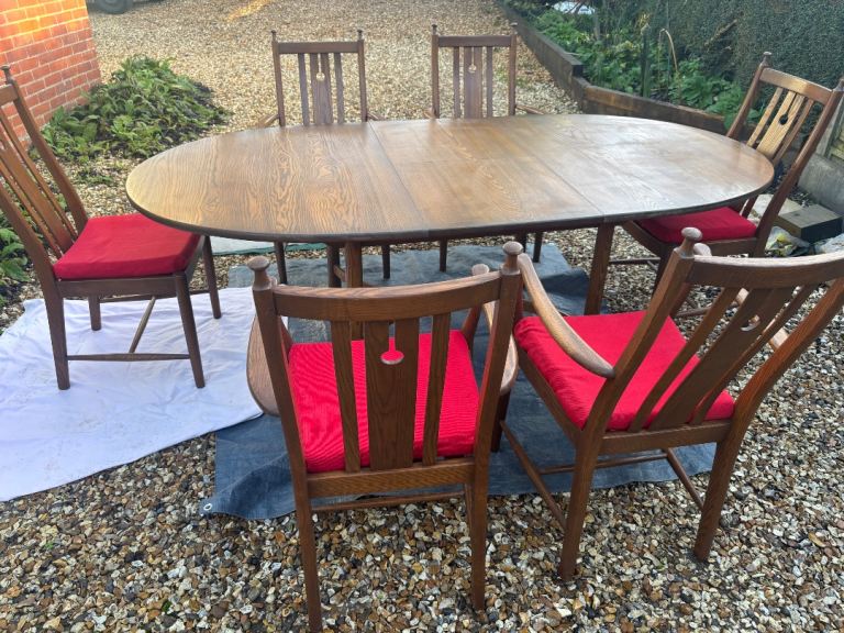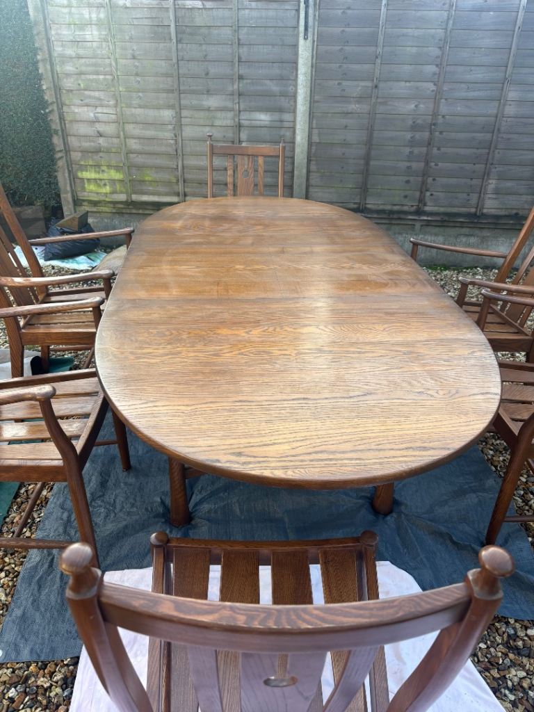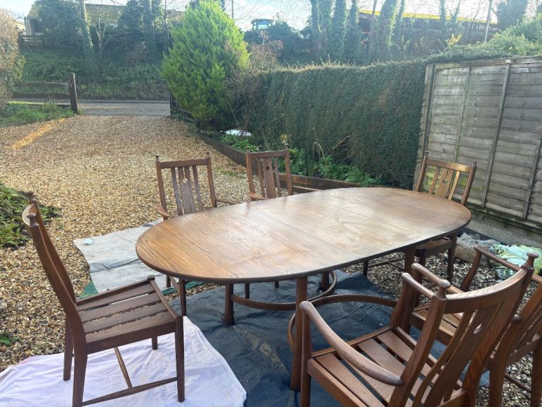 Posting for 9+ yearsErcol vintage extendable elm 6-8 person dining room table and 6 matching chairs