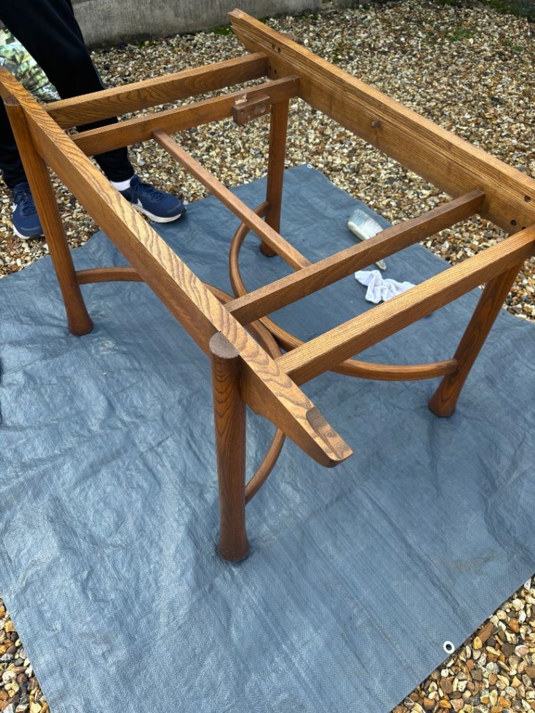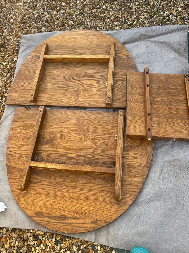 It has not been used in a long time and is in need of a little sand and revarnish on the little nicks, over wise we’ve recently oiled it.