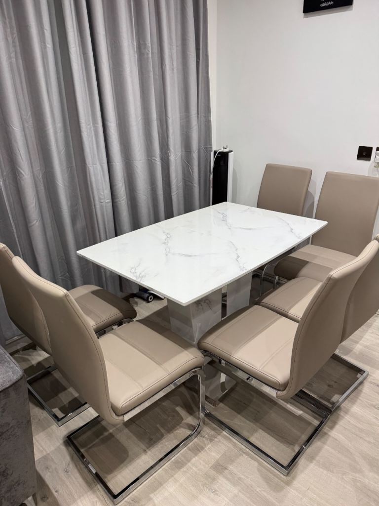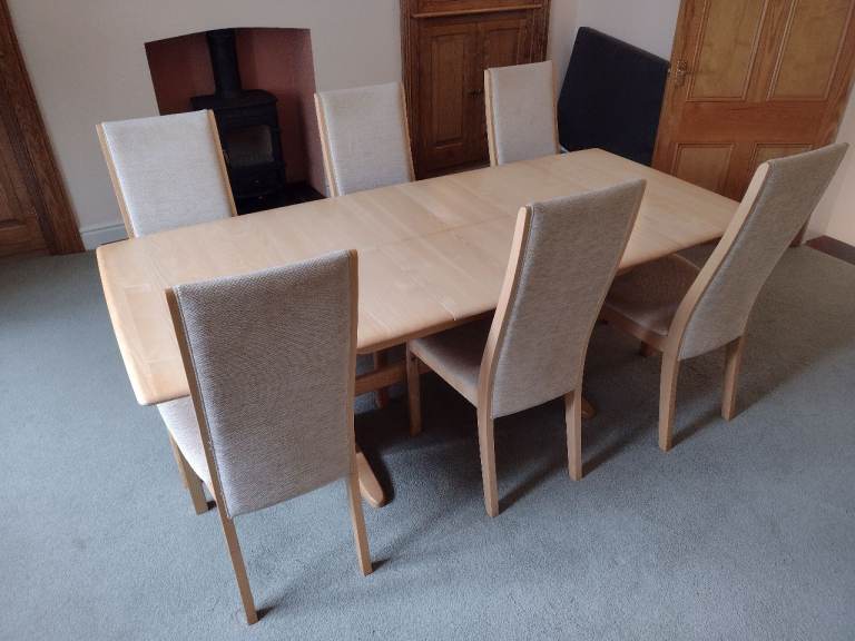 Posting for 4+ yearsErcol Windsor extending medium dining table (solid ash) with 6 chairs