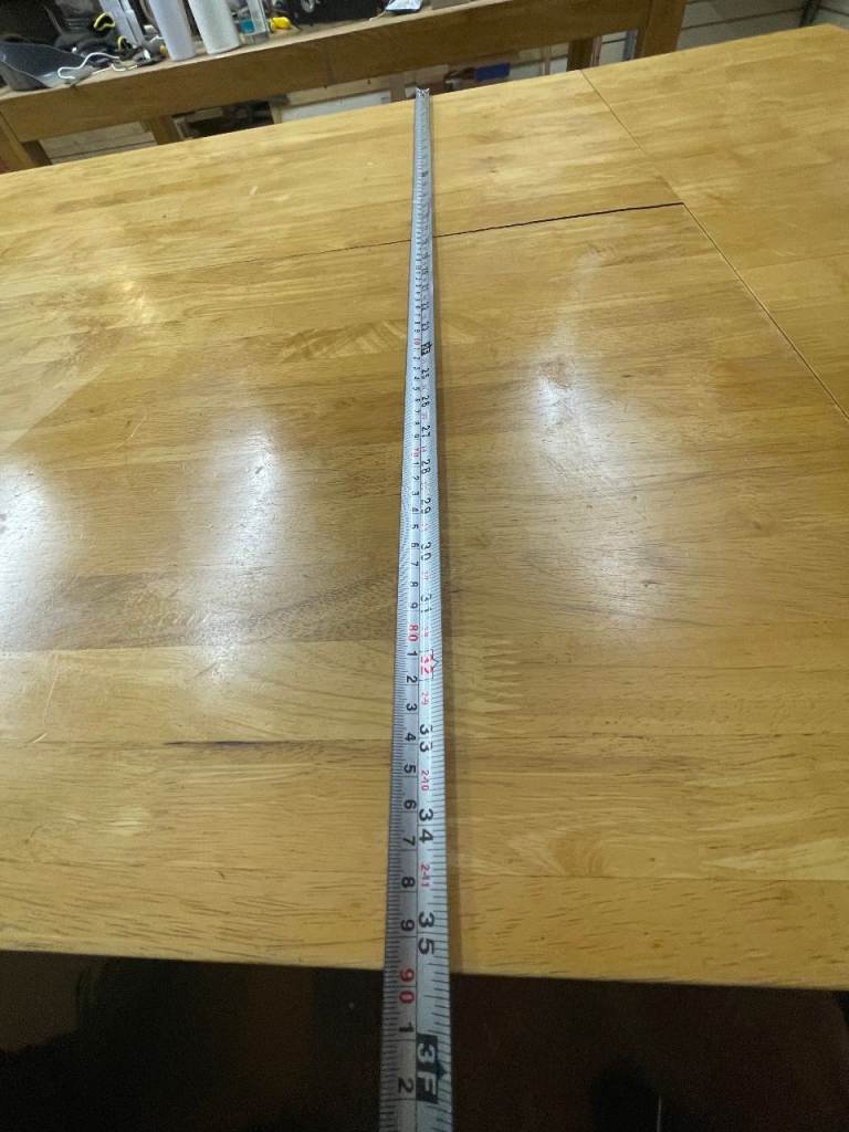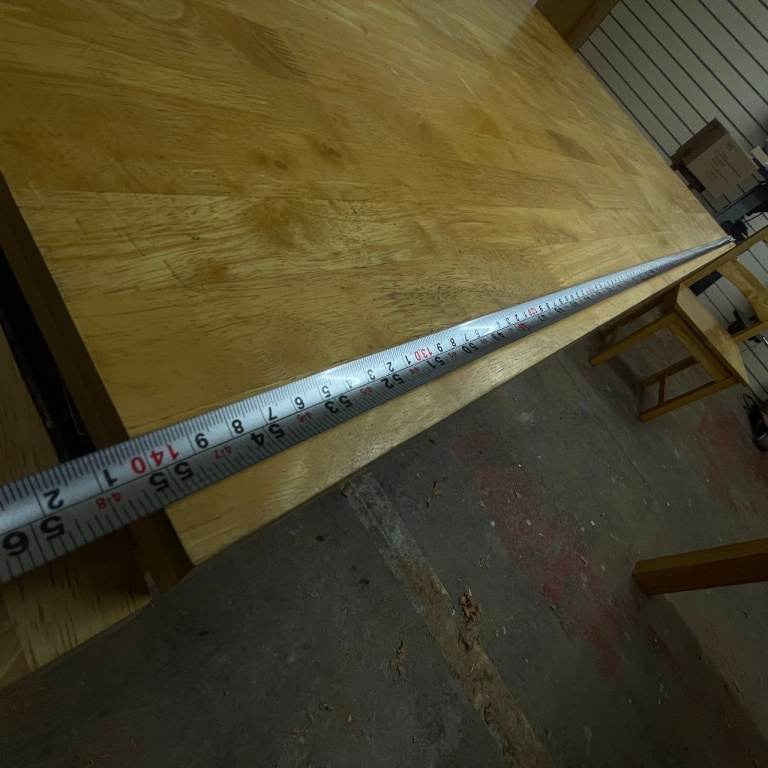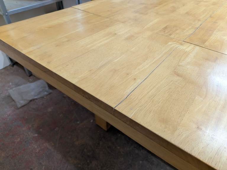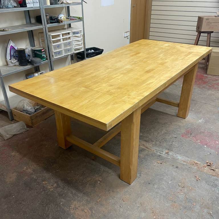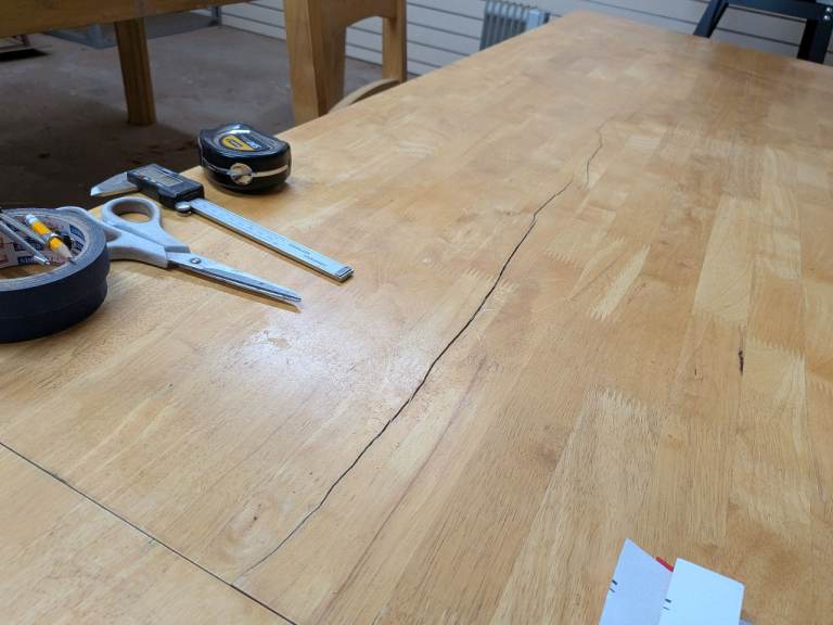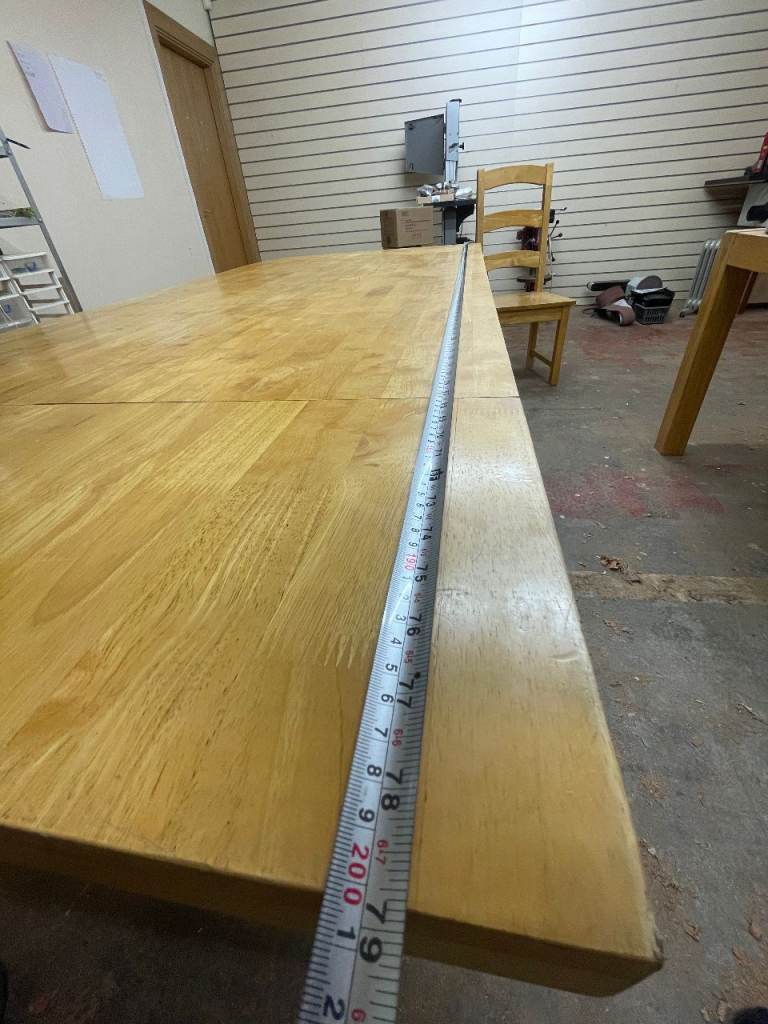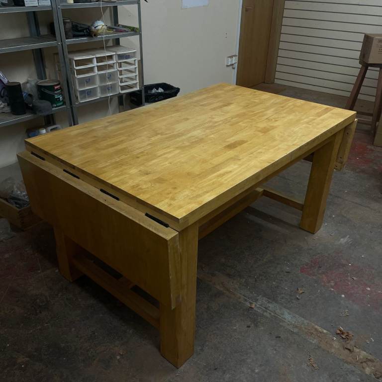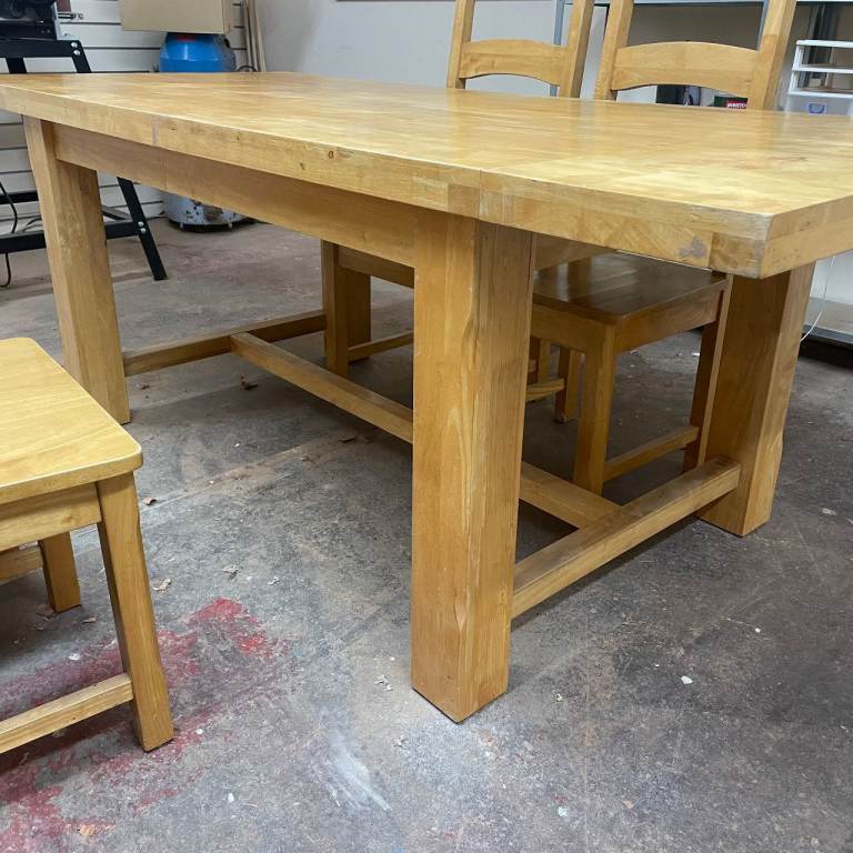 A extendable dinning table with four chair. It was used as a workbench and not really in a state to be used as a dining table.