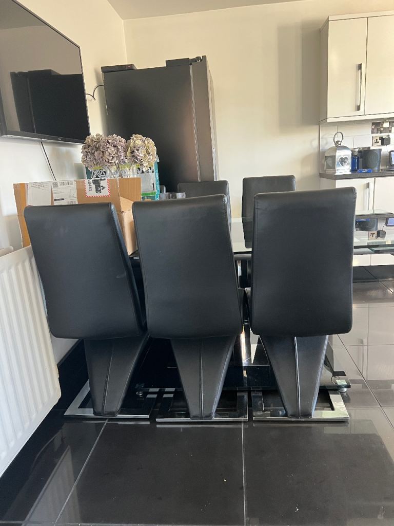 Seats 8-10 people, great condition, comes with 6 leather chairs