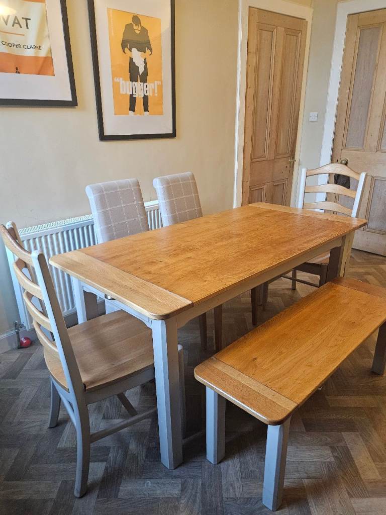 Posting for 9+ yearsExtendable Oak table and benches excellent condition