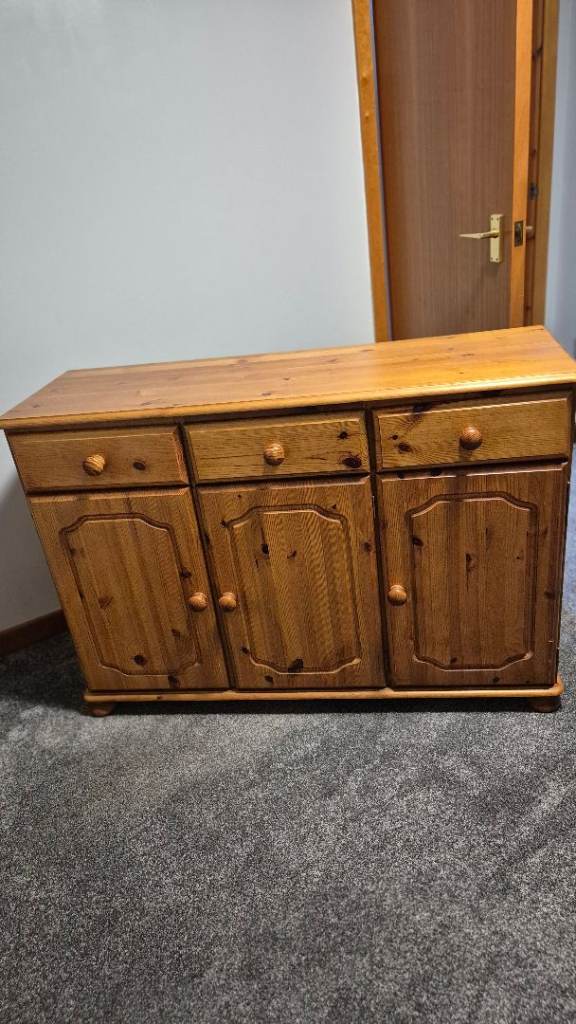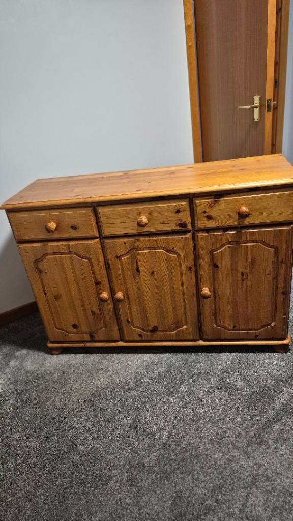 Posting for 7+ yearsExtendind dining room table,six chairs and 3door,3drawer sideboard.