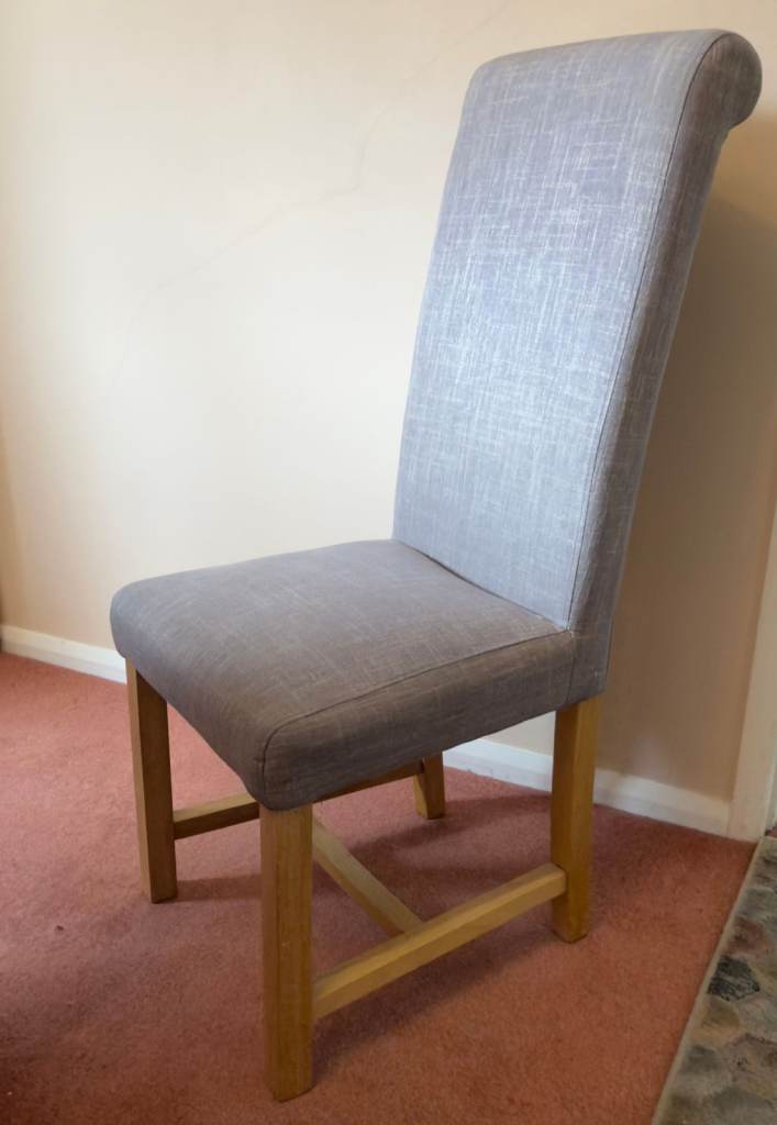 6 comfortable, high back, cloth covered chairs to blend with any decor.