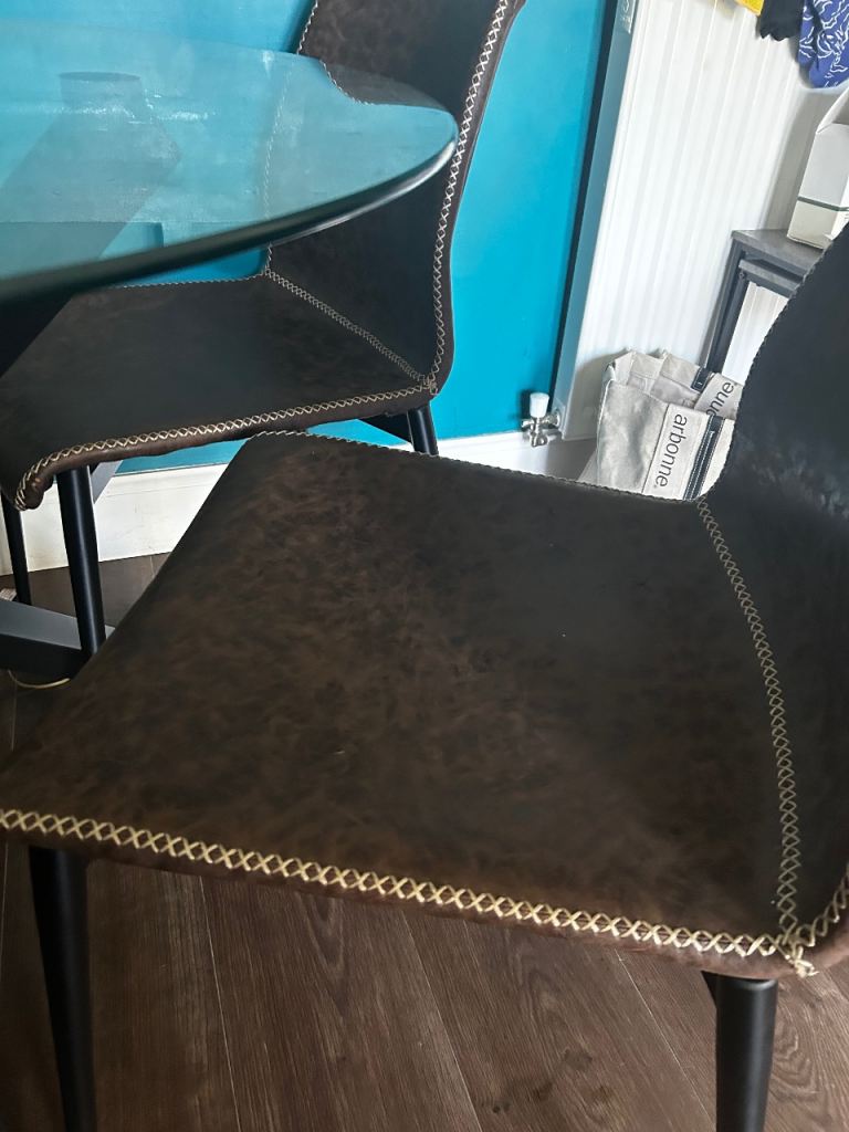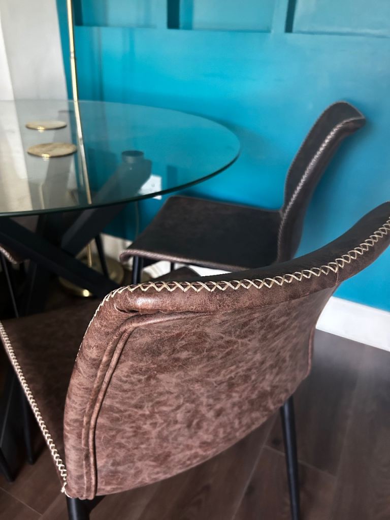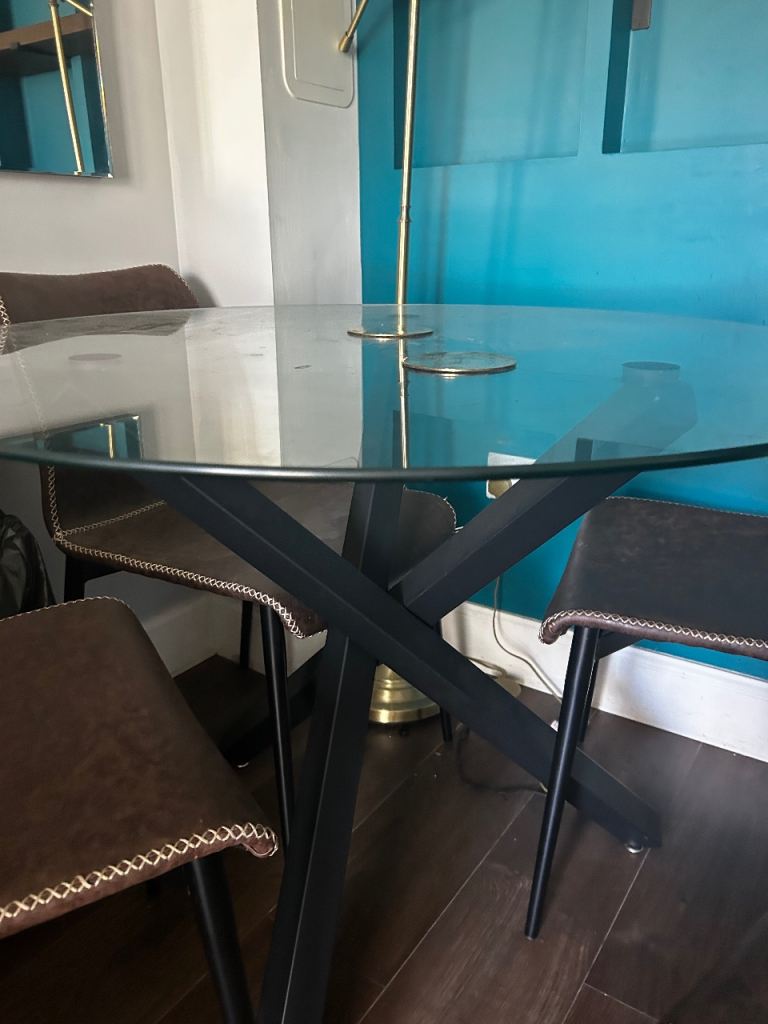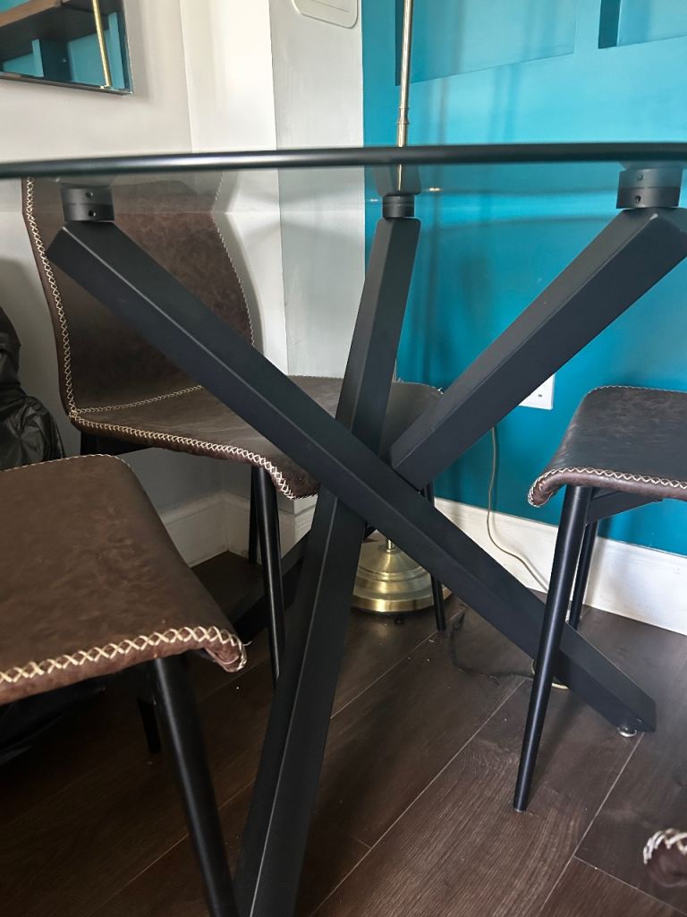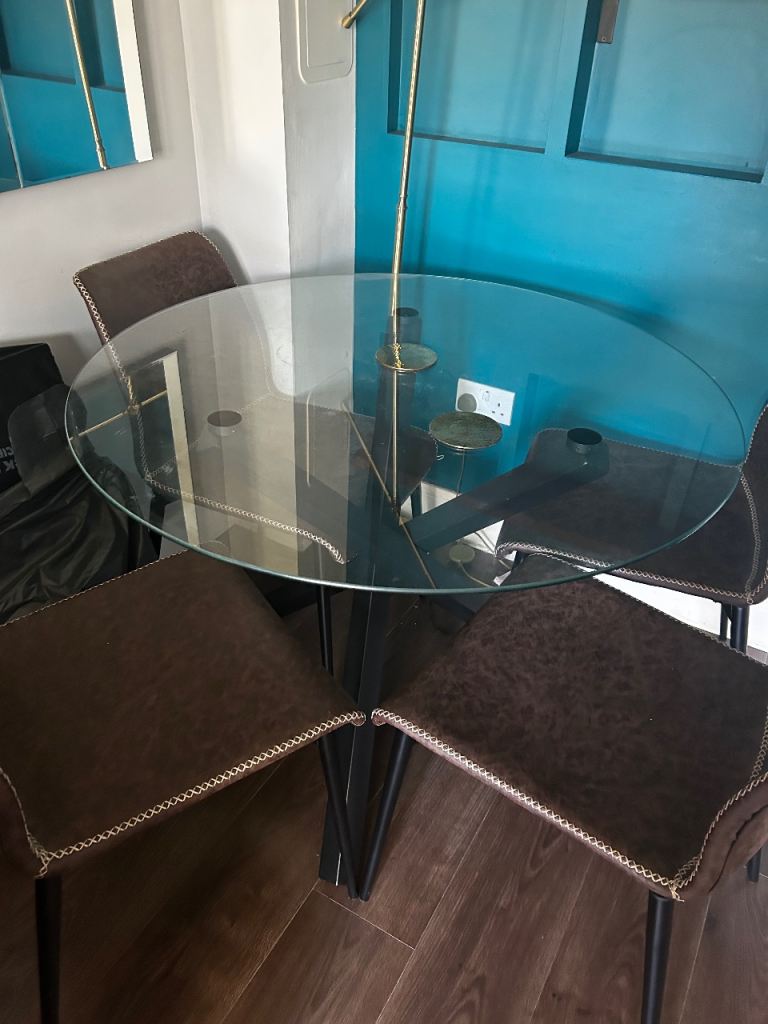 Posting for 19+ yearsGlass Dining Table & 4 Brown Fabric Chairs - Good Condition