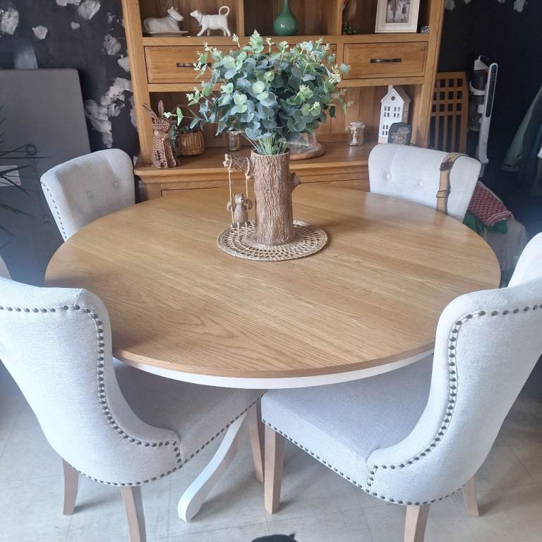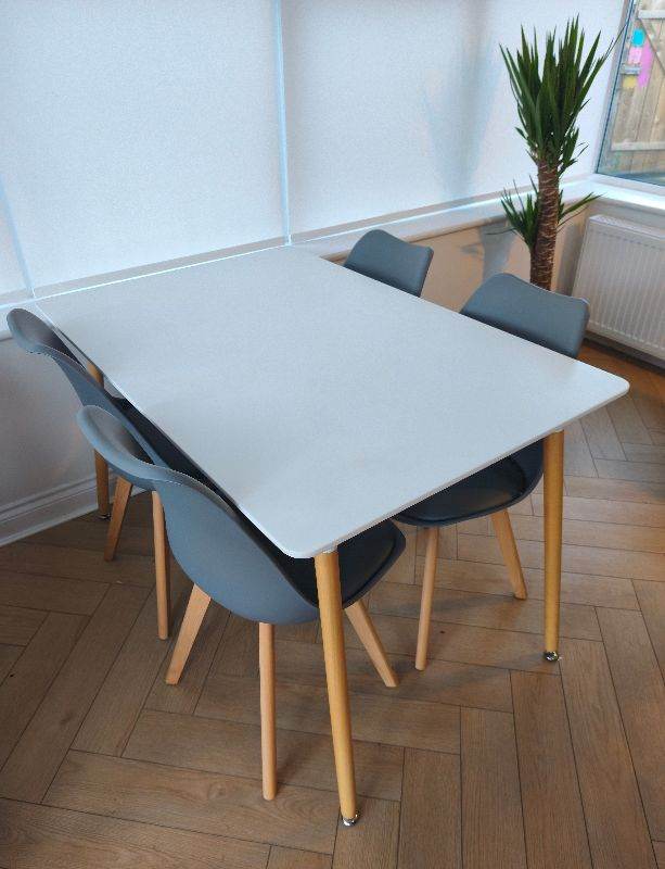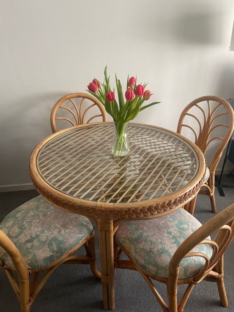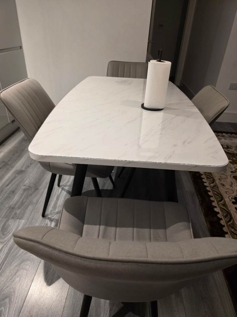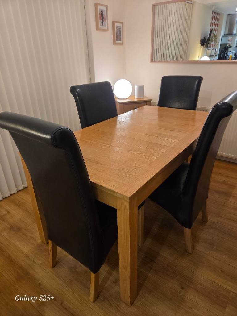 Extending glass table and 4 chairs. Ok condition buyer collects