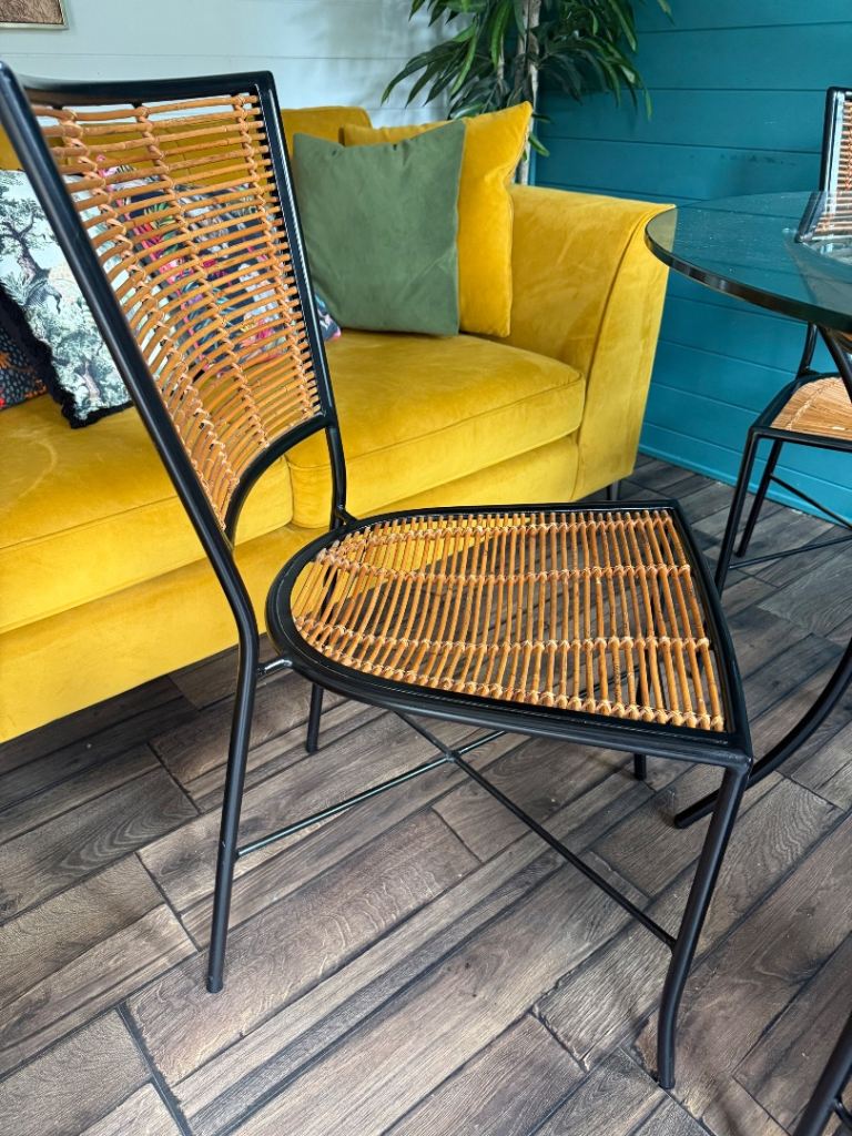 Dining table and 4 chairs, barely used. Width approx 106cm, height approx 77cm. Collect from Essex