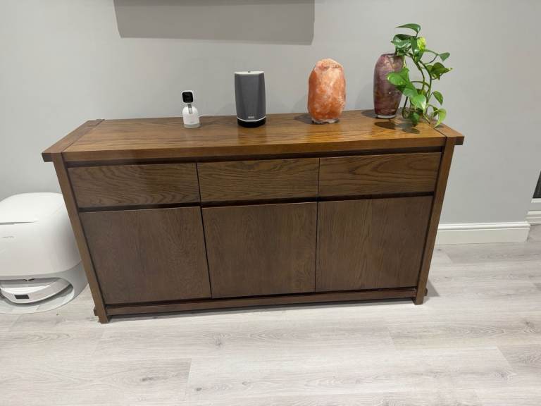 Sideboard: Matching three-drawer, three-door unit with ample storage.