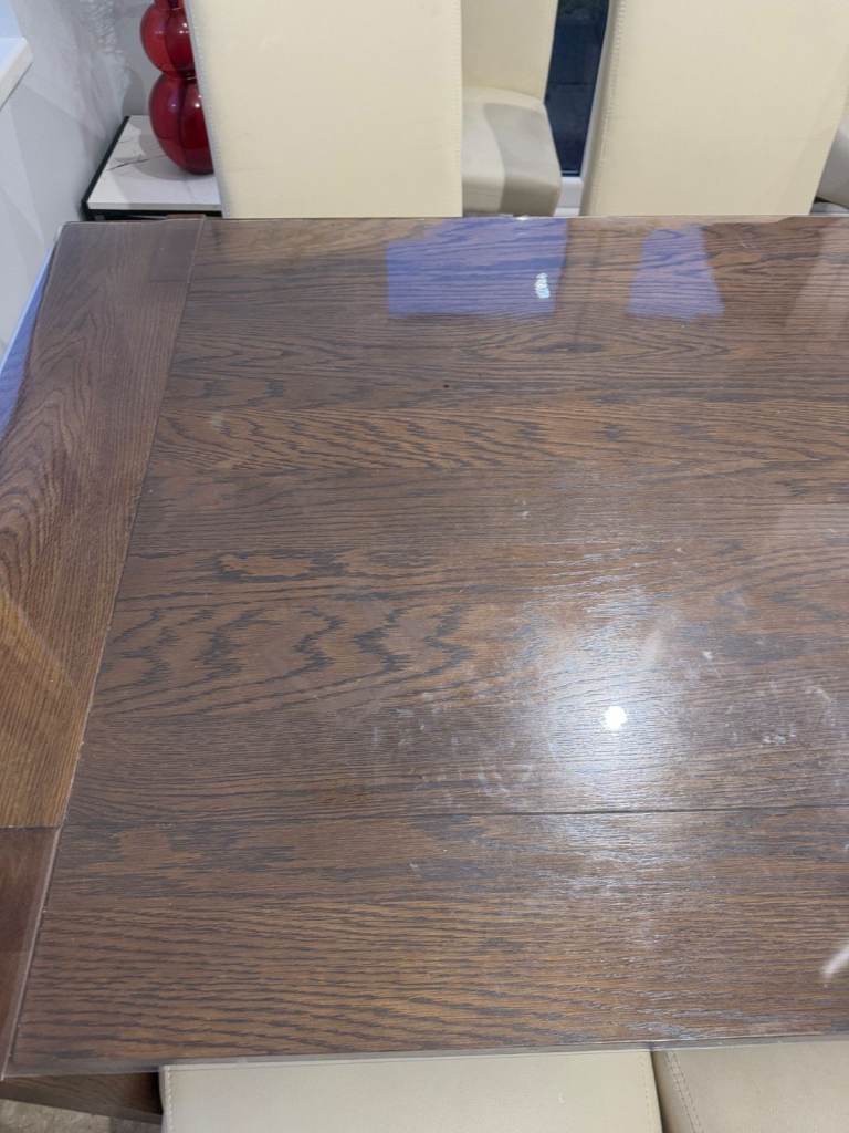 Posting for 15+ yearsHarvey’s Dining Set – Extending Oak-Finish Table, 6 Chairs & Sideboard